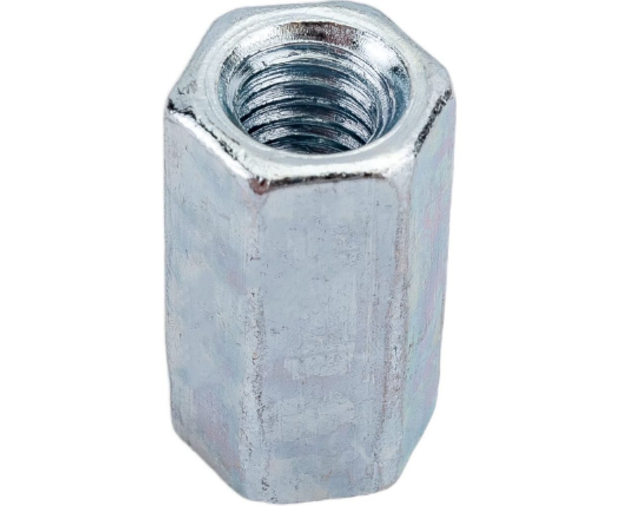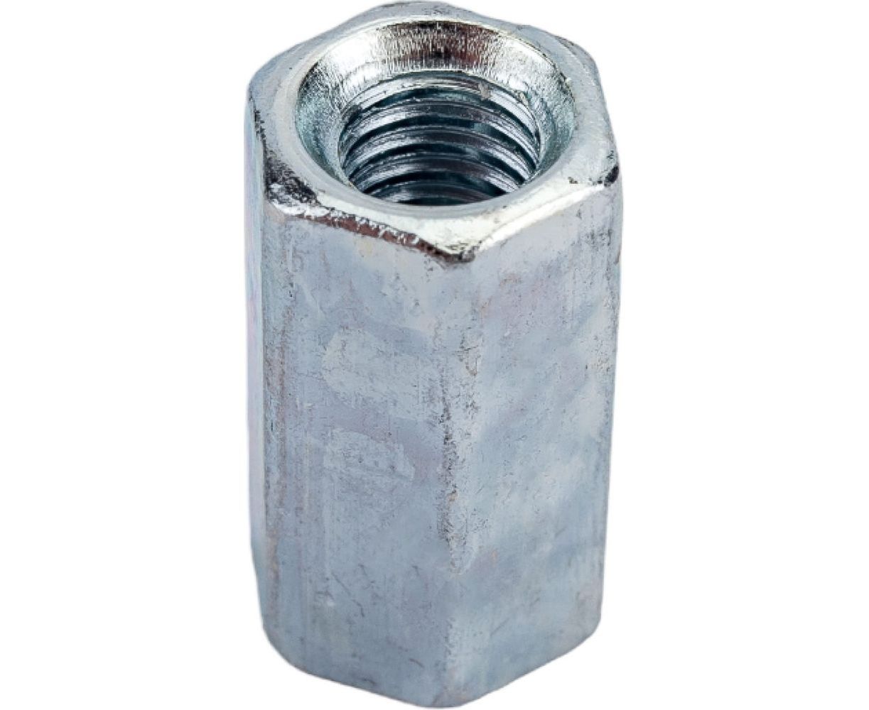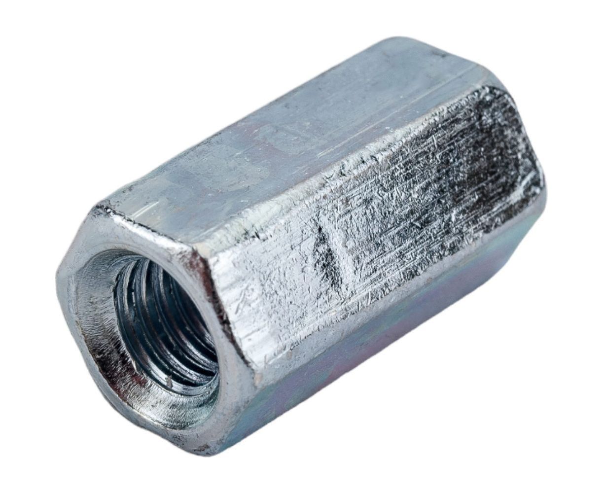 Гайка-втулка предназначена для удлинения, соединения штанг с одинаковым размером резьбы между собой, в строительстве, машиностроении и в других промышленных и строительных отраслях. Гайка имеет вытянутую шестигранную форму с отверстием, в котором нарезана резьба. Цинковое покрытие защищает от коррозии.