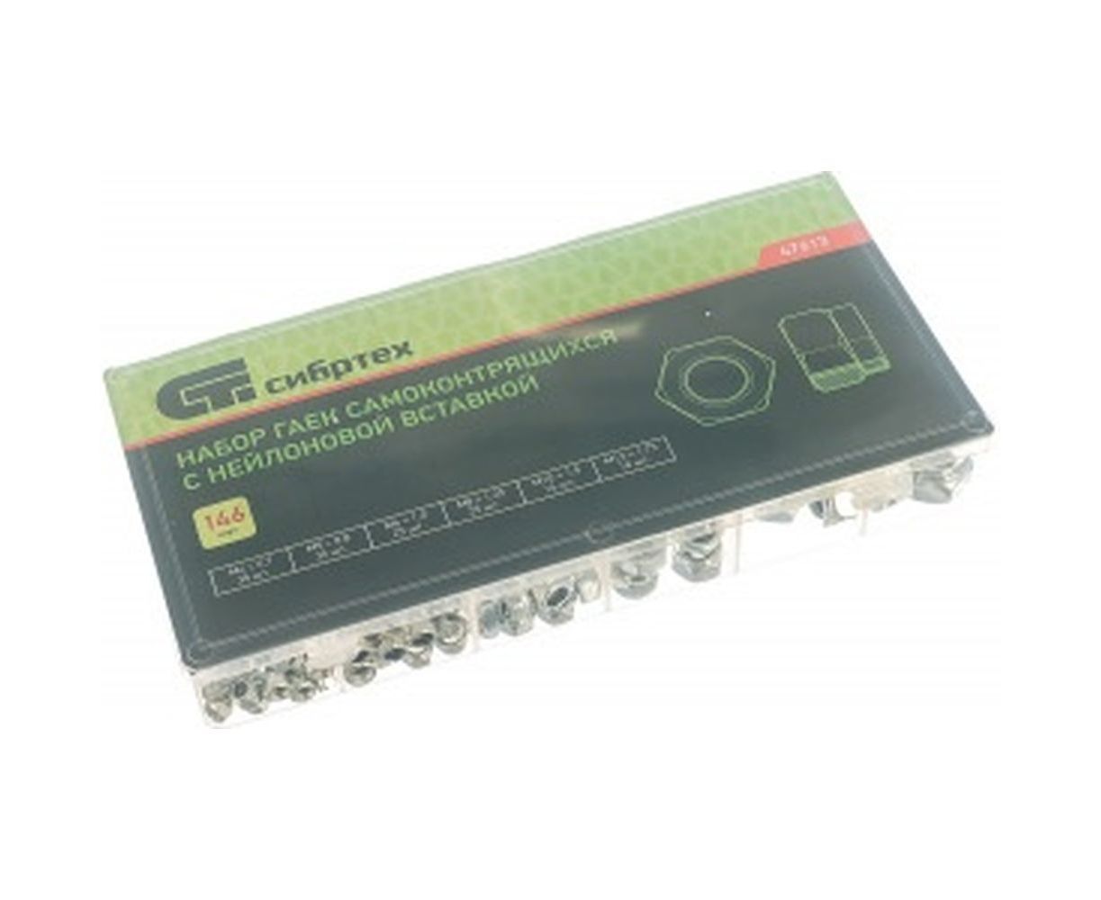 Набор самоконтрящихся гаек с нейлоновой вставкой СИБРТЕХ 146 предметов 47613