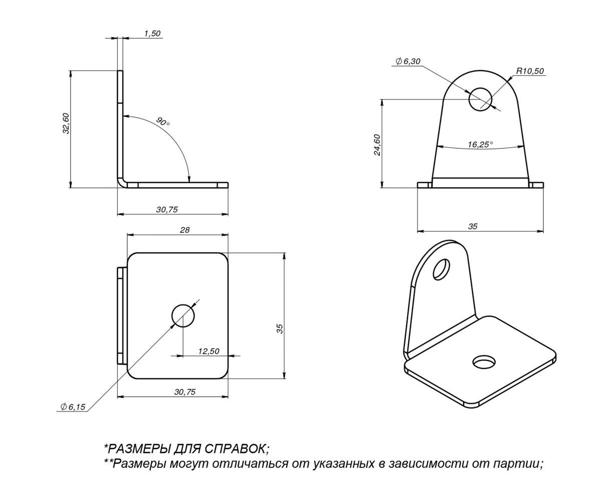 Уголок нержавеющий КХЭМ DIN 35, 1.5 мм, AISI 430, 90 град., 10 шт. УН КХЭМ-DIN35 1,5мм предназначен для крепления различного оборудования, металлоконструкций, предметов и аксессуаров. Размер 35 мм обеспечивает возможность установки любого оборудования с посадочным местом DIN 35. Уголки можно соединять между собой болтами М6 (в комплект не входят) и собирать из них поворотный кронштейн.