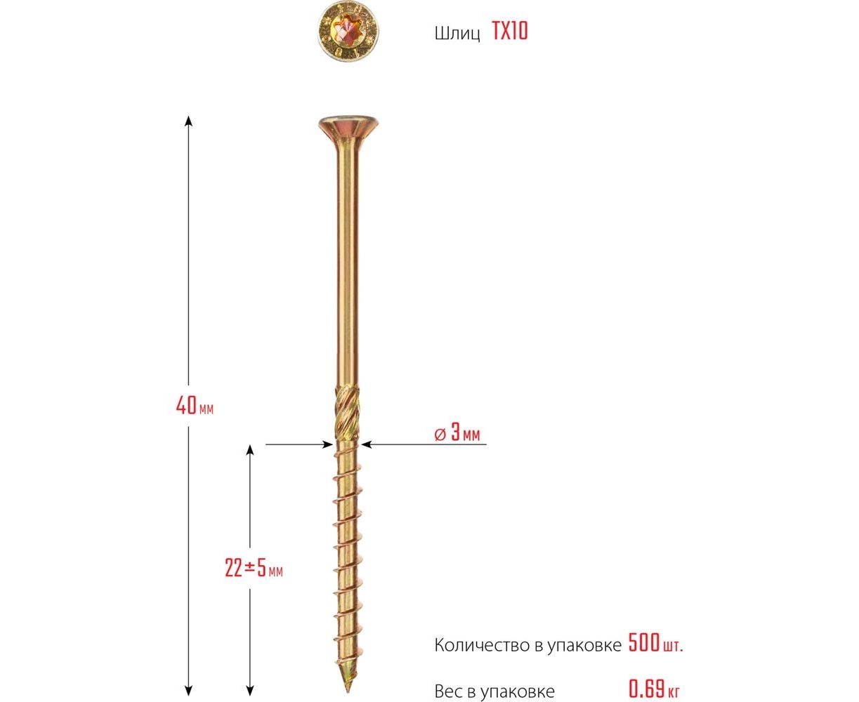 Конструкционные саморезы ЗУБР КС-П 40x3.0 мм, 500 шт., желтый цинк 30041-30-040