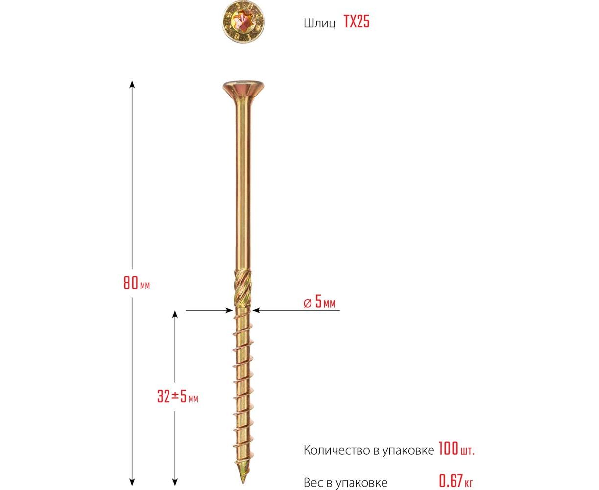 Конструкционные саморезы ЗУБР кс-п, 80x5 мм, 100 шт., желтый цинк 30041-50-080
