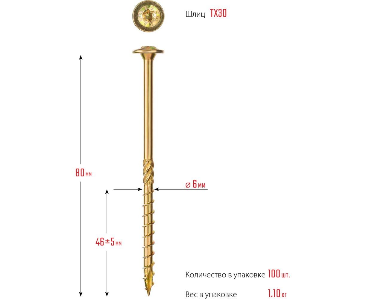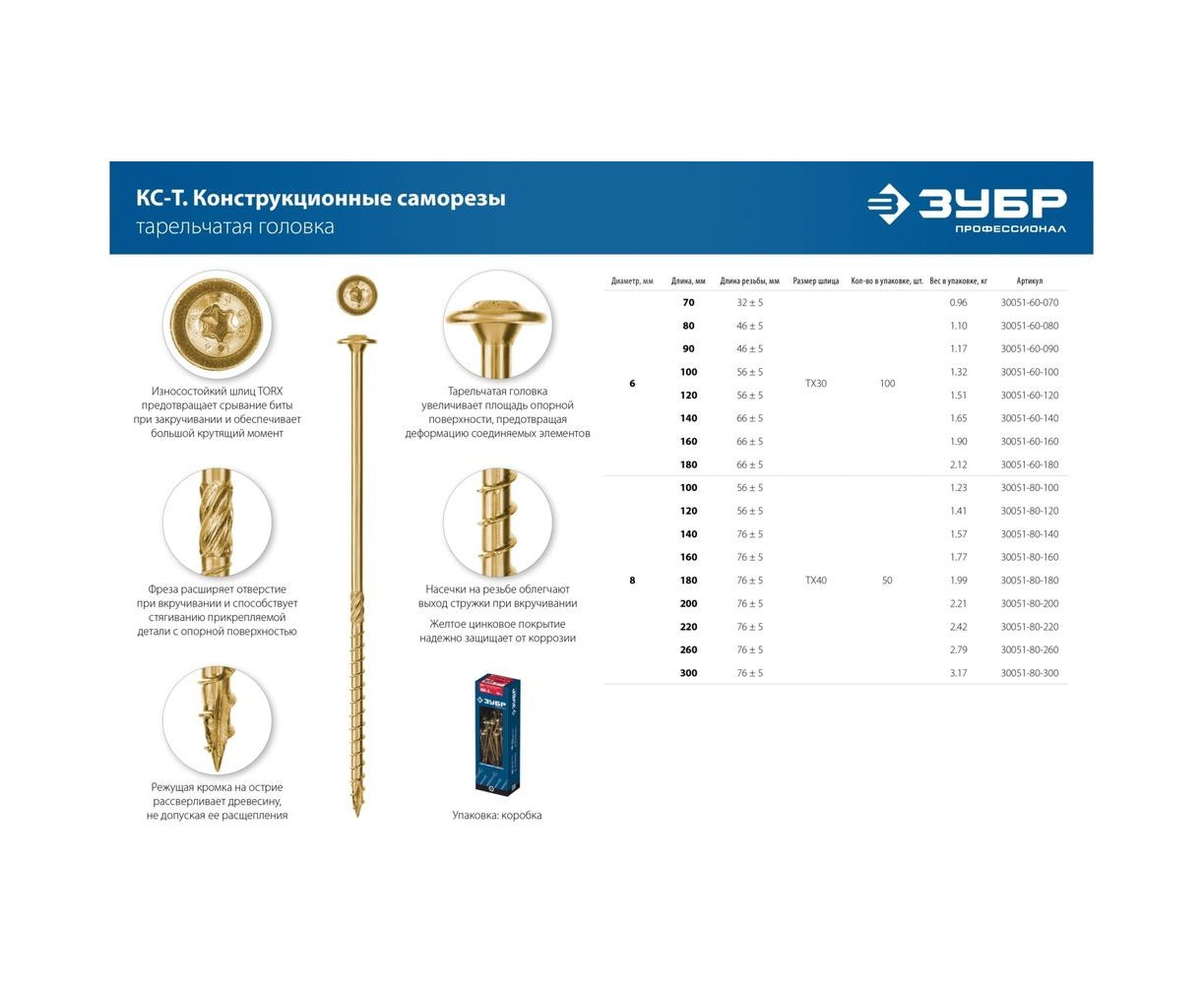 Конструкционные саморезы ЗУБР кс-т, 80x6 мм, 100 шт., желтый цинк 30051-60-080