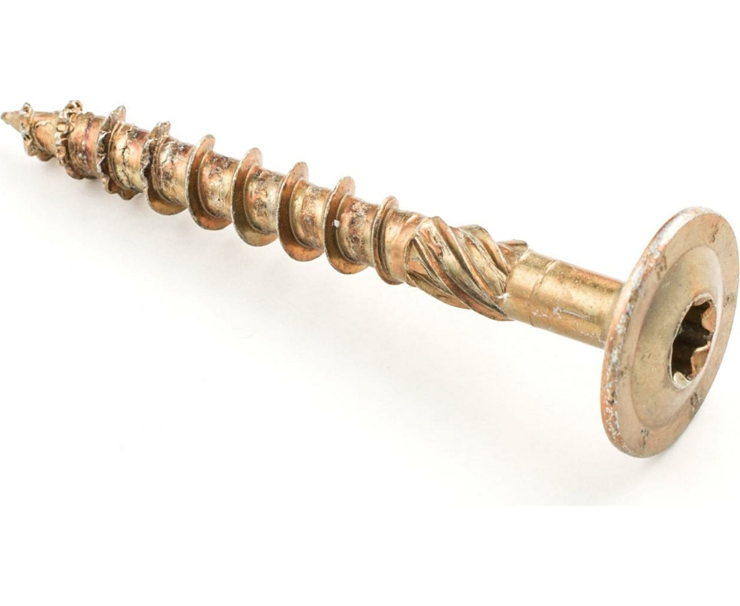 Конструкционный саморез Гвозdeck тарелка, 8х120 T40 202380120YETXRD0 с самофиксирующей, самонарезающей резьбой, с тарельчатой головкой, шлиц torx, для надежного крепления конструкции. Применяется для монтажа конструкций из древесины.
