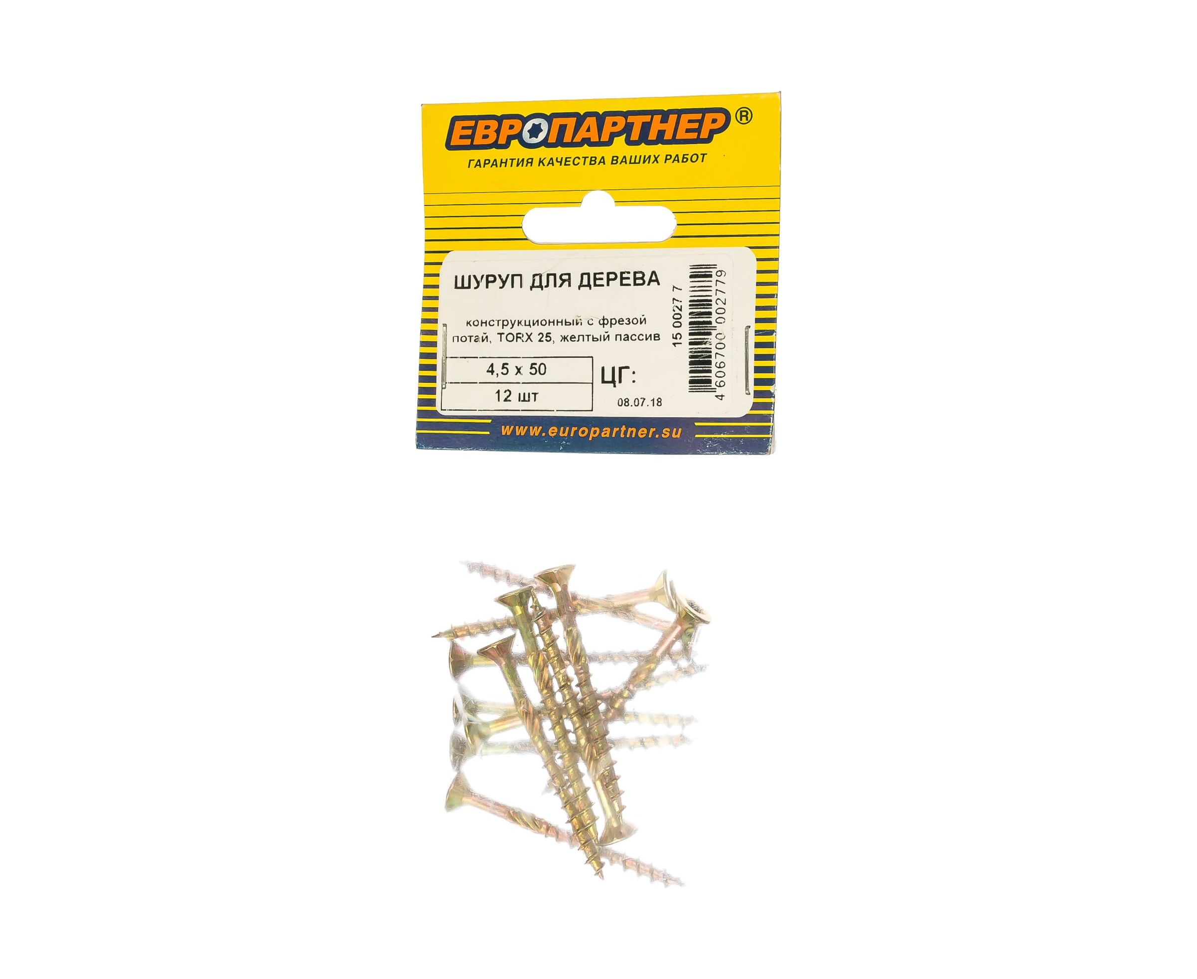 Конструкционный шуруп для дерева с фрезой ЕВРОПАРТНЕР потай, ж/п Torx 25 4.5х50 12 шт. 15 0027 7