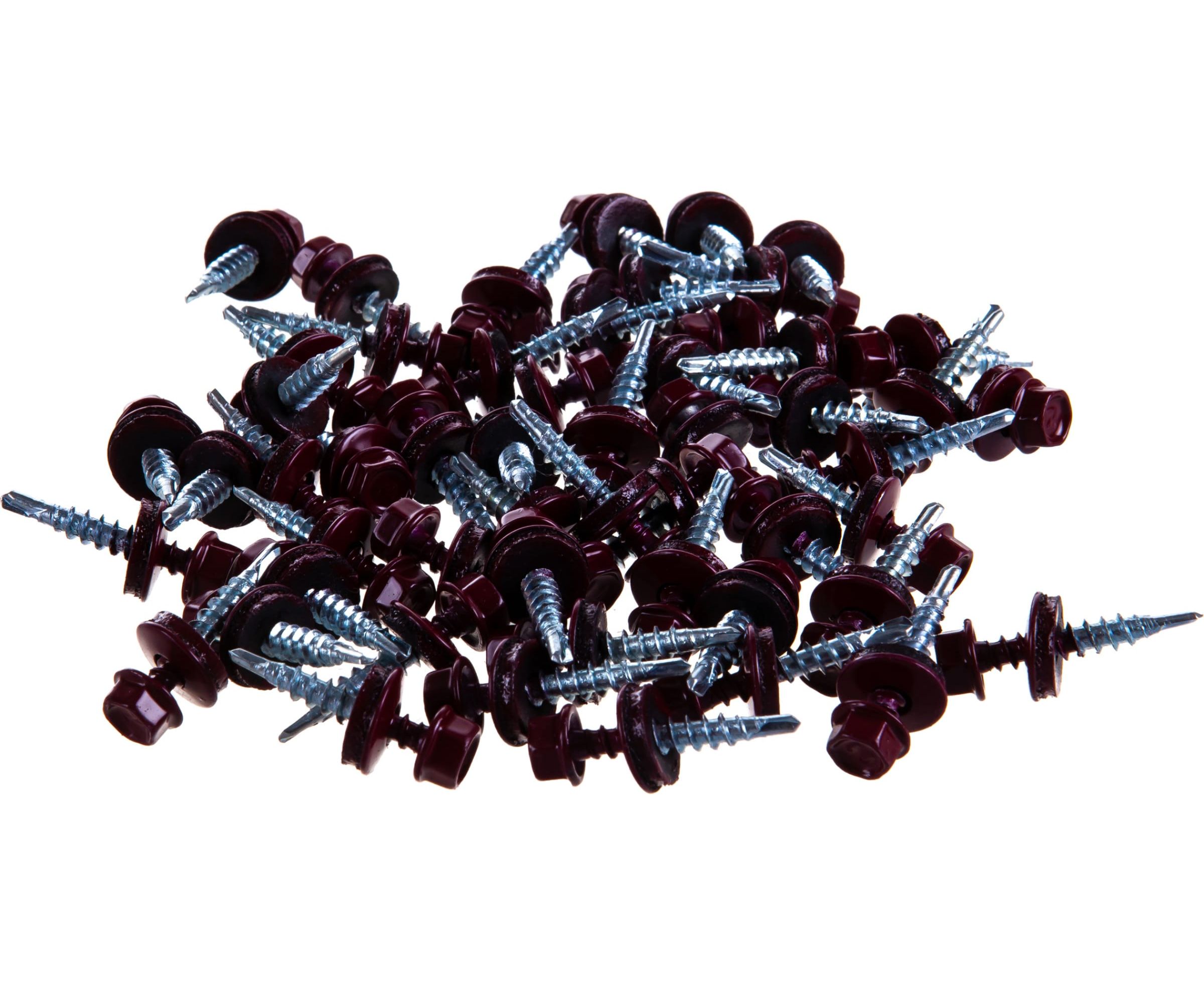 Кровельные саморез Tech-Krep КР сверло 4,8х28 RAL-3005 винно-красный 60 шт, коробка с окном 125551