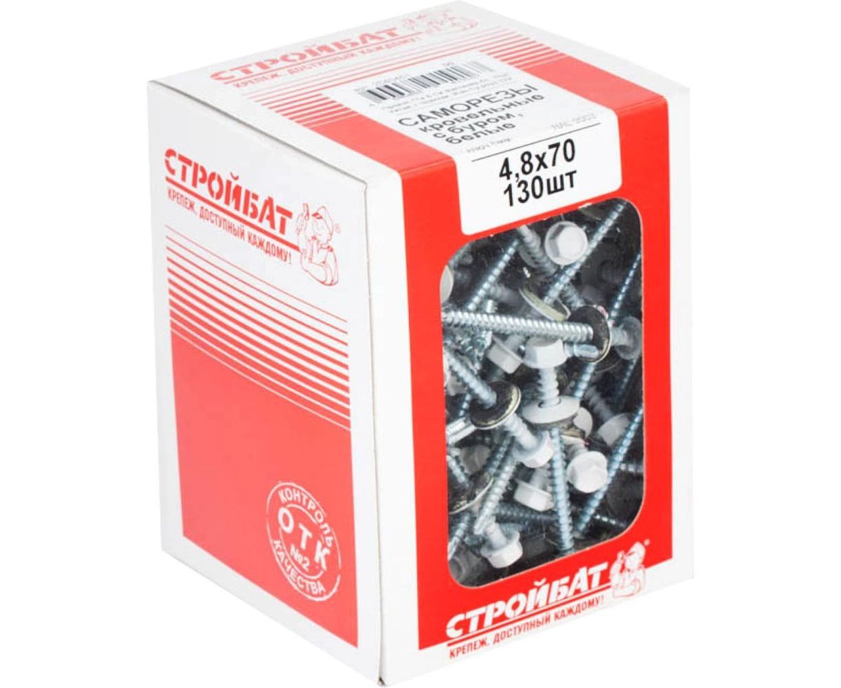 Кровельные саморезы с буром Стройбат 4.8x70 мм, белые, 130 шт. 240650