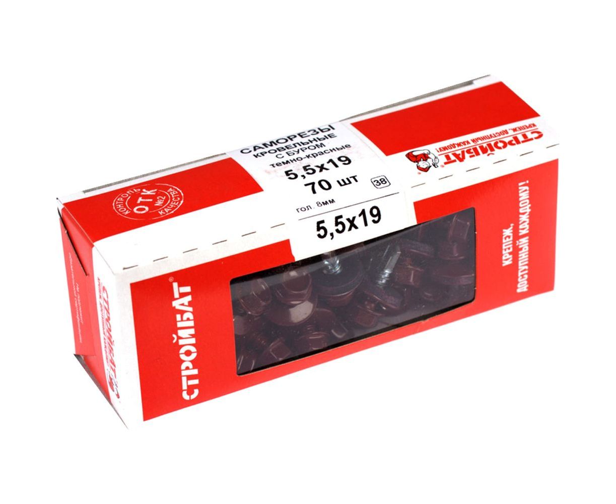 Кровельные саморезы с буром Стройбат 5,5x19 темно-красный 70 шт. 304760