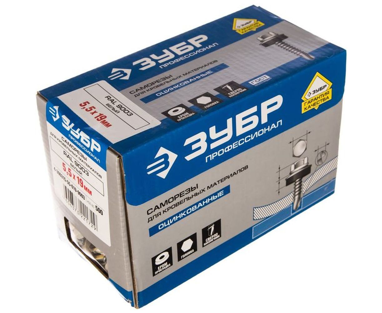 Кровельные саморезы ЗУБР СКМ RAL 9003 белый, 19 x 5.5 мм, 500 шт 4-300315-55-019-9003