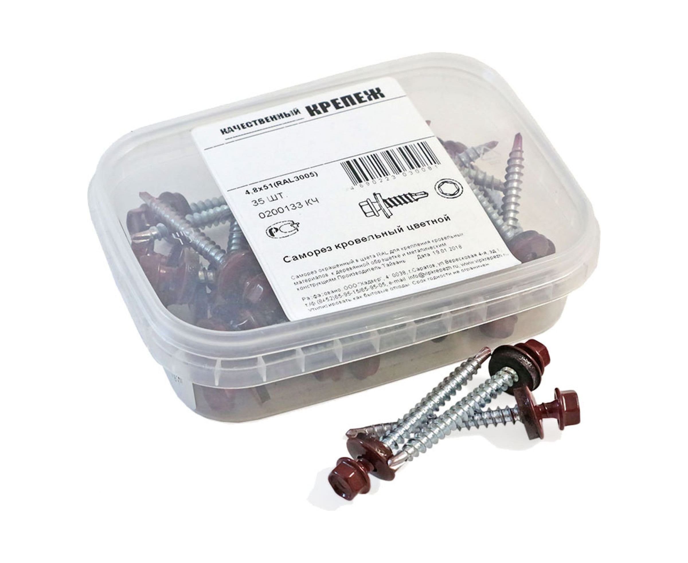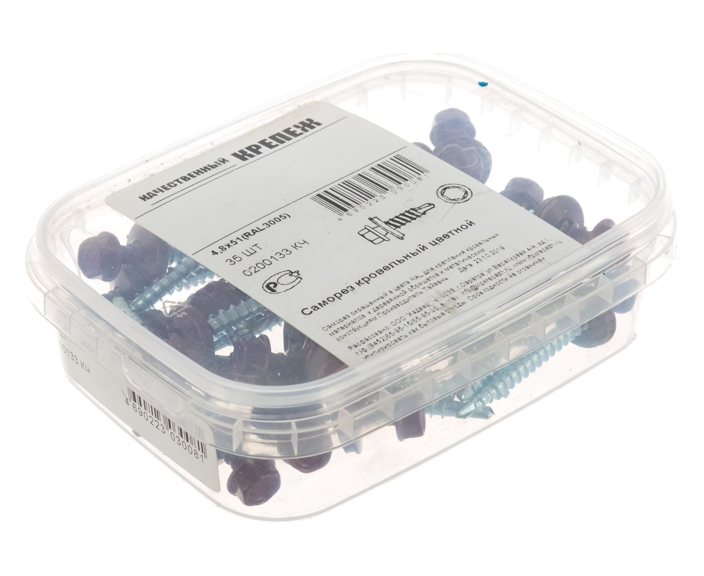 Кровельный саморез Качественный КРЕПЕЖ красное вино RAL 3005, 4.8х51 мм, 35 шт 0200133 КЧ