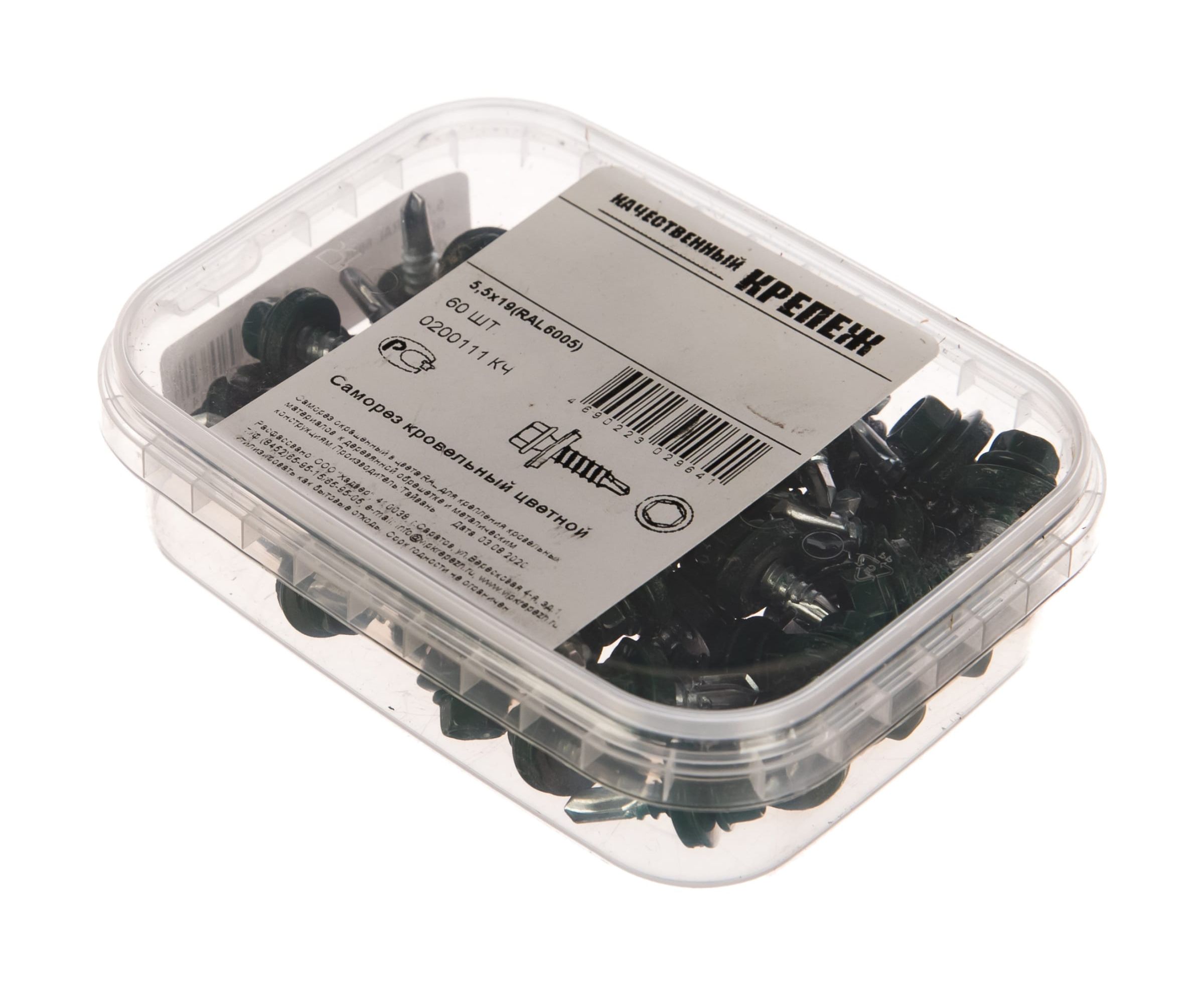Кровельный саморез Качественный КРЕПЕЖ зеленый мох RAL 6005, 5.5х19 мм, 60 шт 0200111 КЧ