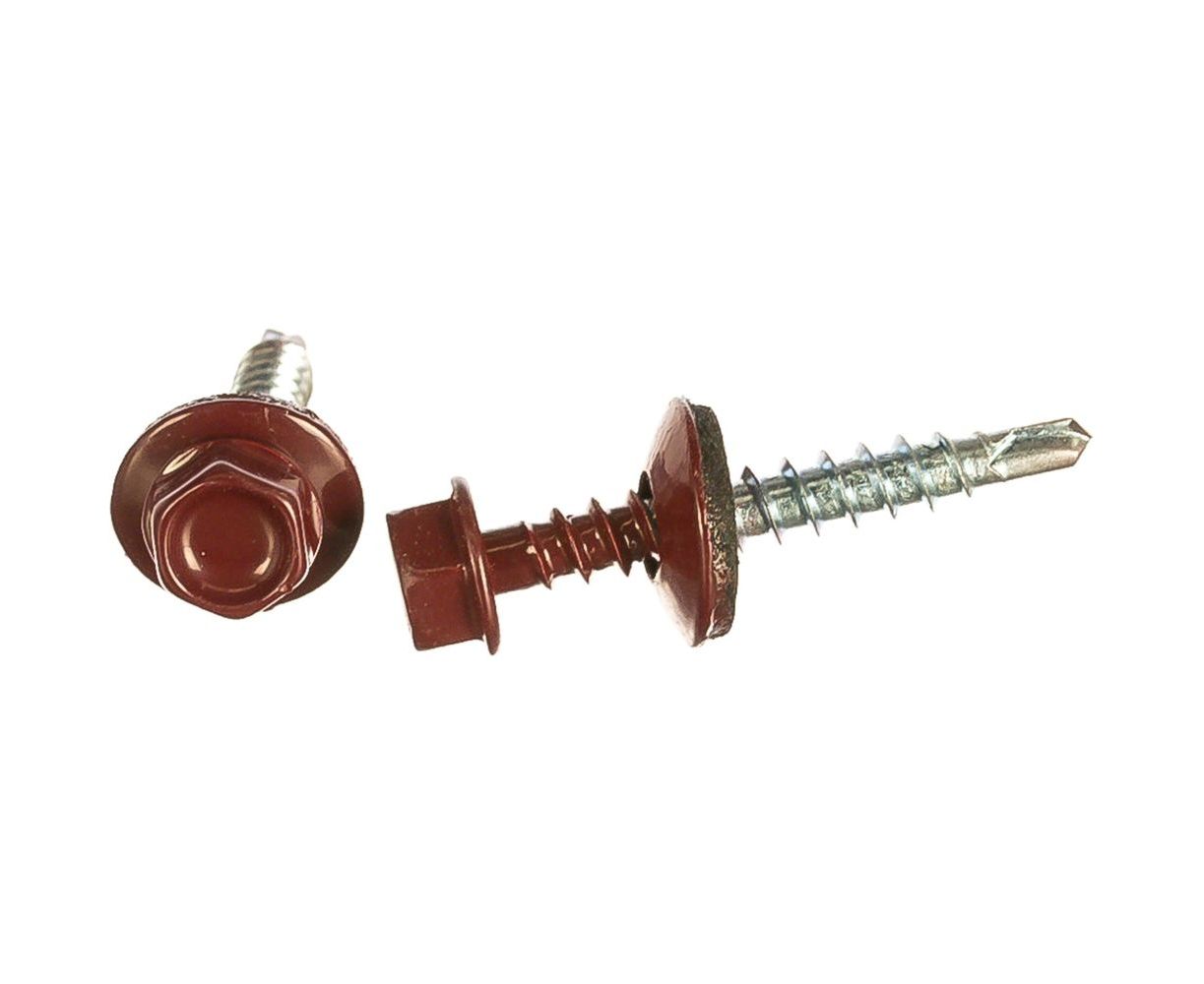 Кровельный саморез, красное вино Крепежная техника 4,8х35 RAL 3005 250шт 420308 БК - надежный метиз для крепления специальных листовых материалов, предназначенных для перекрытия крыш. Изделие выполнено из стали марки Ст 10, имеет цветное исполнение шестигранника и металлической шайбы. Также в конструкции шурупа предусмотрена мягкая уплотнительная шайба.