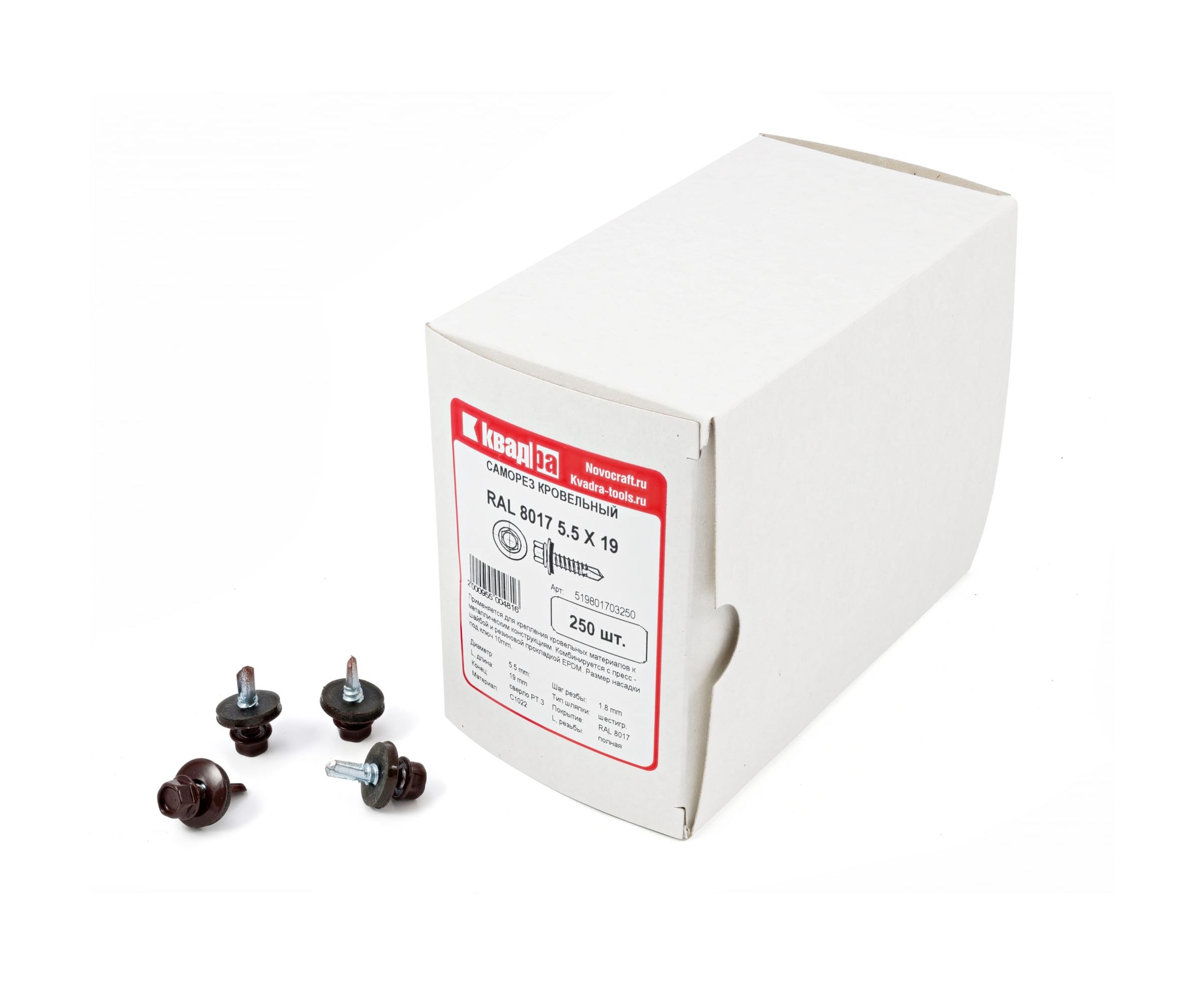 Кровельный саморез КВАДРА 5.5x19, RAL 8017 шоколад, сверло PT. 3, кор. 250 шт. 519801703250