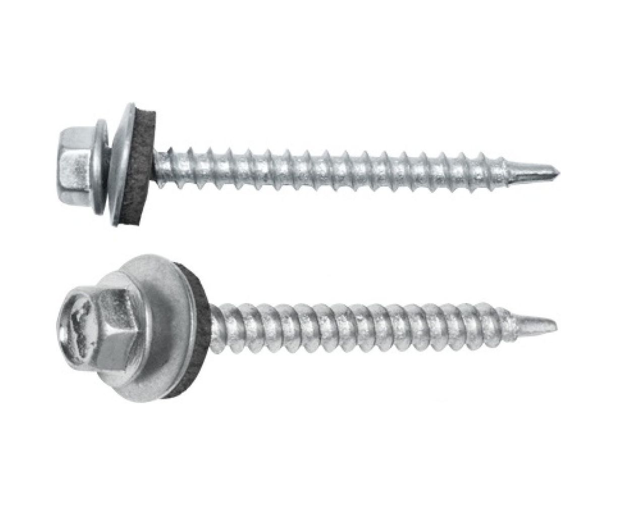 Кровельный саморез STARFIX 4,8x25 мм, цинк, шайба с прокладкой, PT1, 100 шт. SMP2-83809-100 используется для крепления металлочерепицы или другого похожего листового материала к деревянной обрешетке. Сверло на конце облегчает процесс вкручивания метиза.