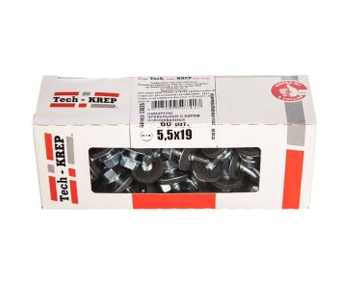 Кровельный саморез Tech-Krep КР ZP сверло 5,5х19 60 шт, коробка с окном 124626