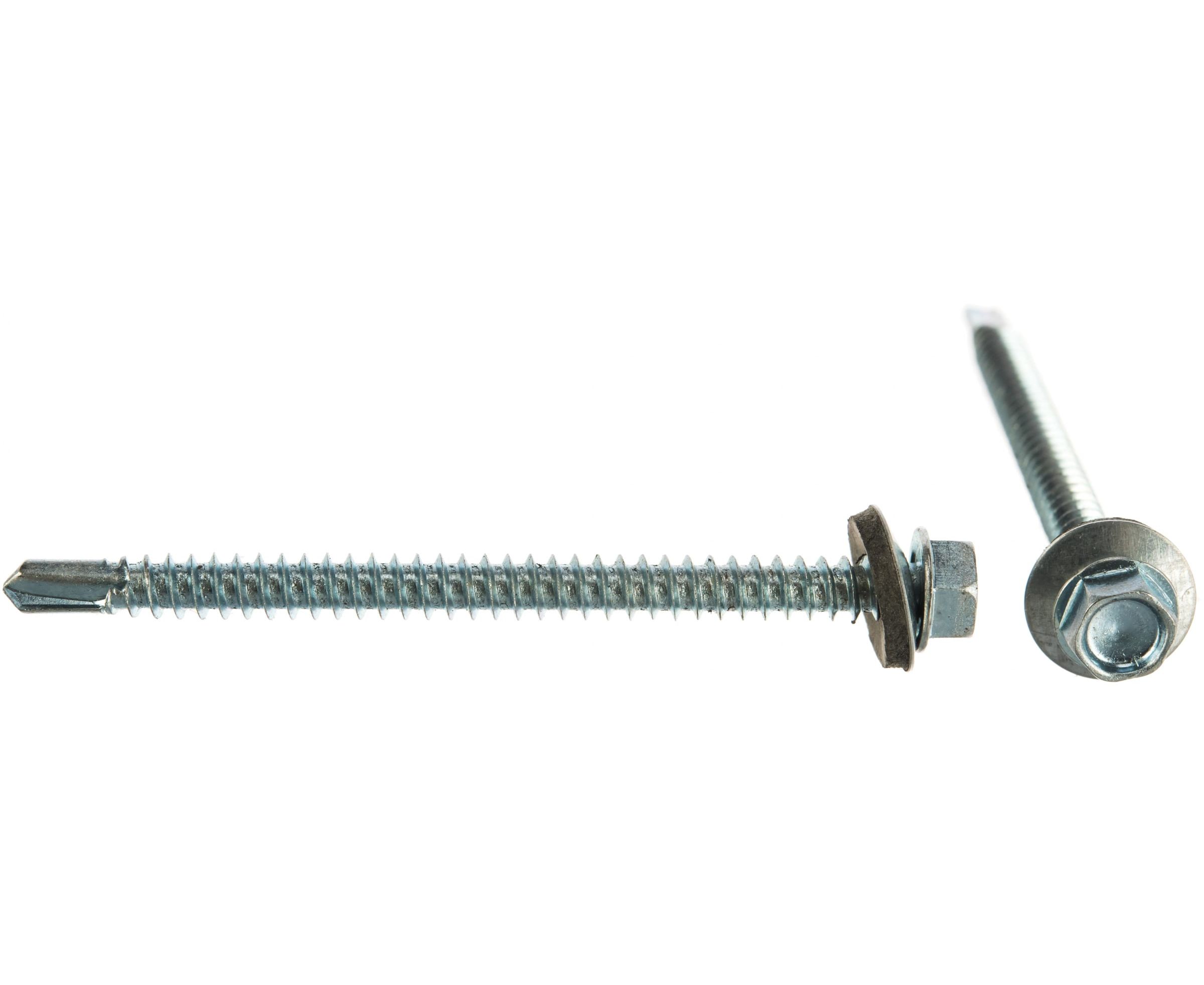 Саморез Невский Крепеж КР ZP св. 5,5х76 100 шт. 800554 применяется для прикрепления оцинкованных гофрированных листов к металлическим или деревянным основаниям. Профнастил - это экономичный и очень распространенный материал для накрытия кровли, как в частном, так и в многоэтажном строительстве. Для быстрой работы с ним выпускаются специальные кровельные саморезы со специальной уплотнительной EPDM-шайбой. Саморезы с буром (сверлом) по металлу используются, когда лист профнастила прикручивается к металлическому каркасу. Комплектуется EPDM-шайбой со специальной уплотнительной «подкладкой», по составу напоминающей плотную резину, которая при вкручивании сжимается и герметизирует отверстие. Шестигранная головка с прессшайбой необходима для оптимального прижима «подкладки» шайбы в процессе монтажа.