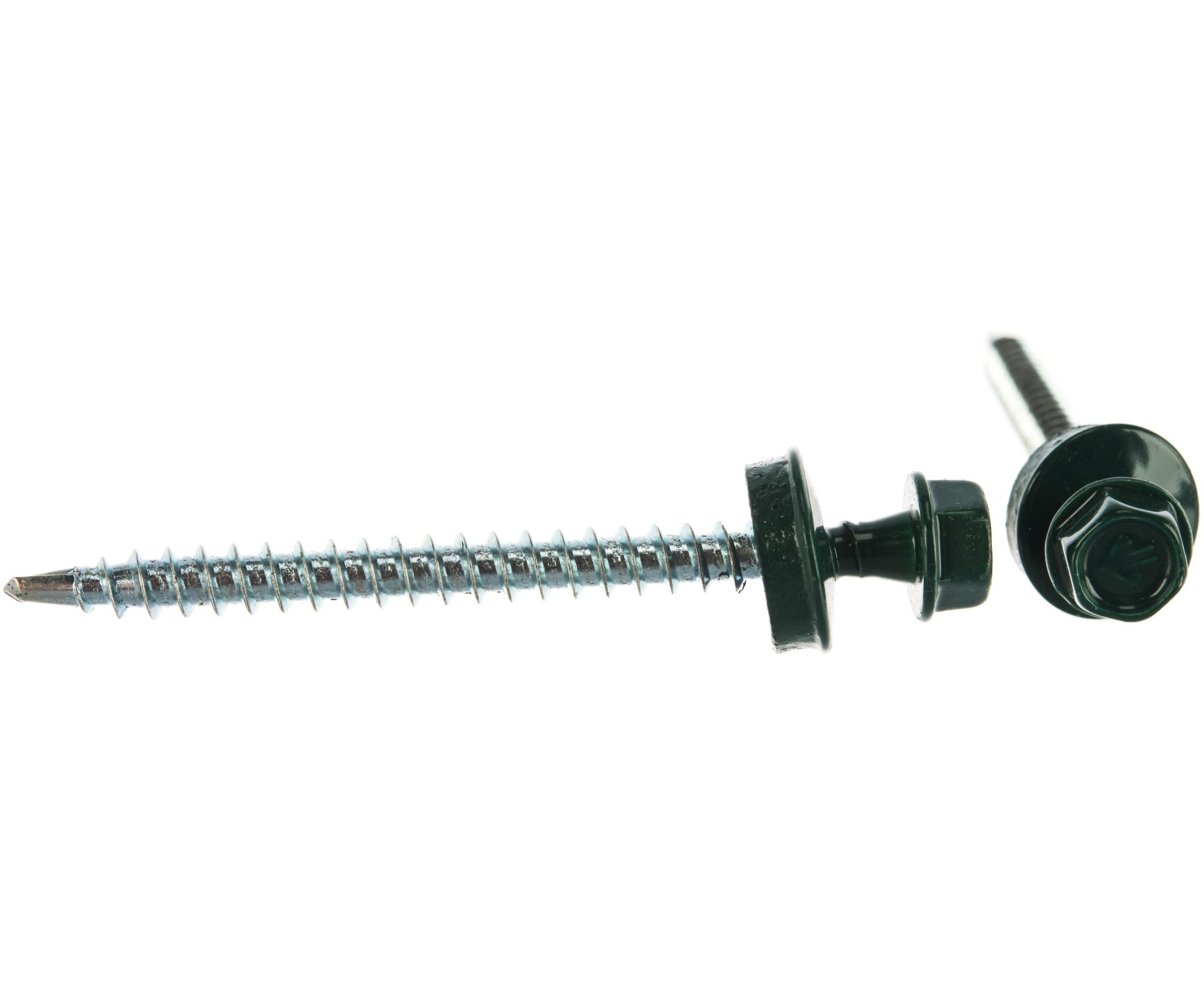 Саморезы Зубр для крепления кровельных материалов к деревянной обрешетке, цвет RAL 6005 зеленый насыщенный, оцинкованный, 4,8x60мм, 1000шт 4-300310-48-060-6005