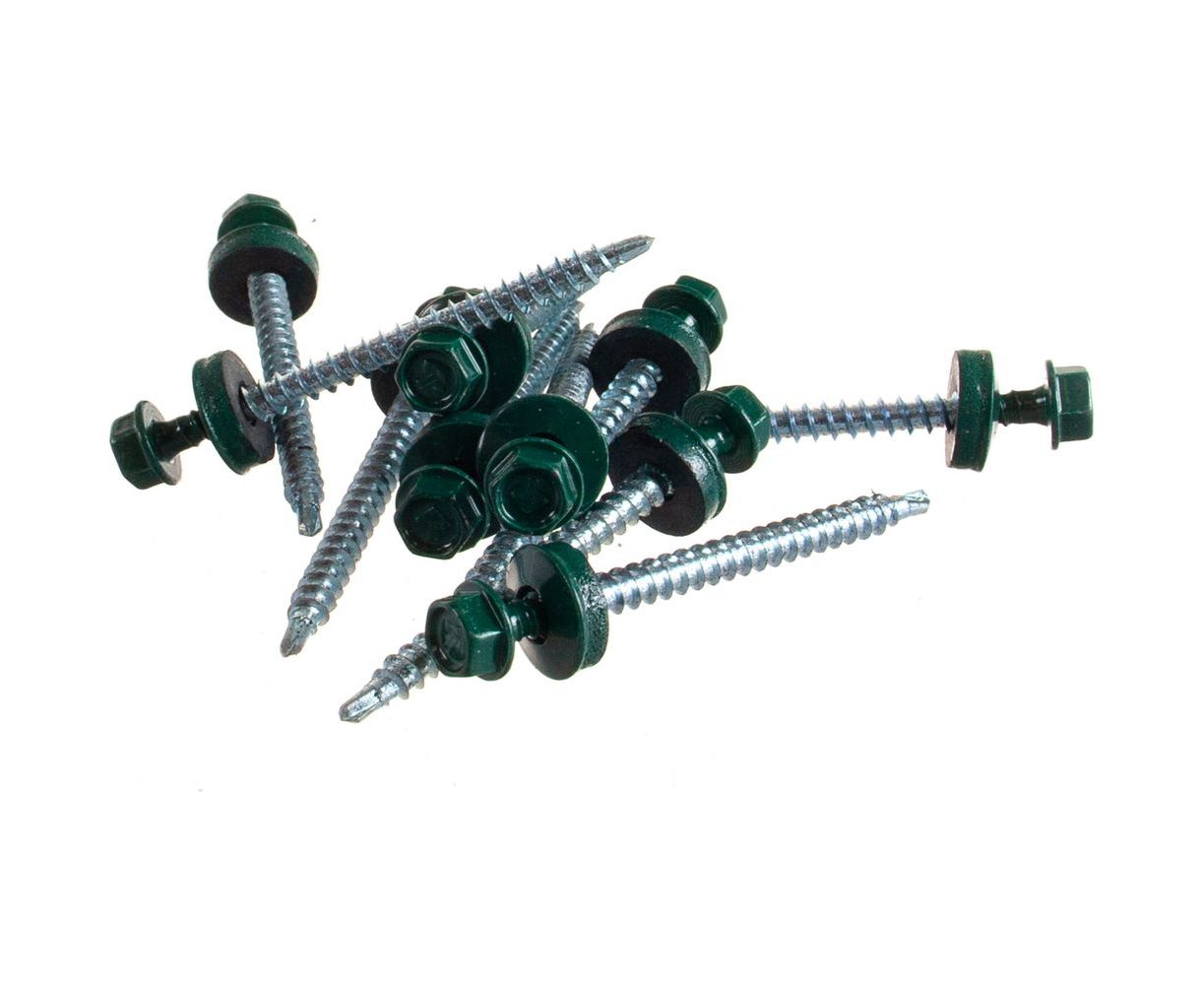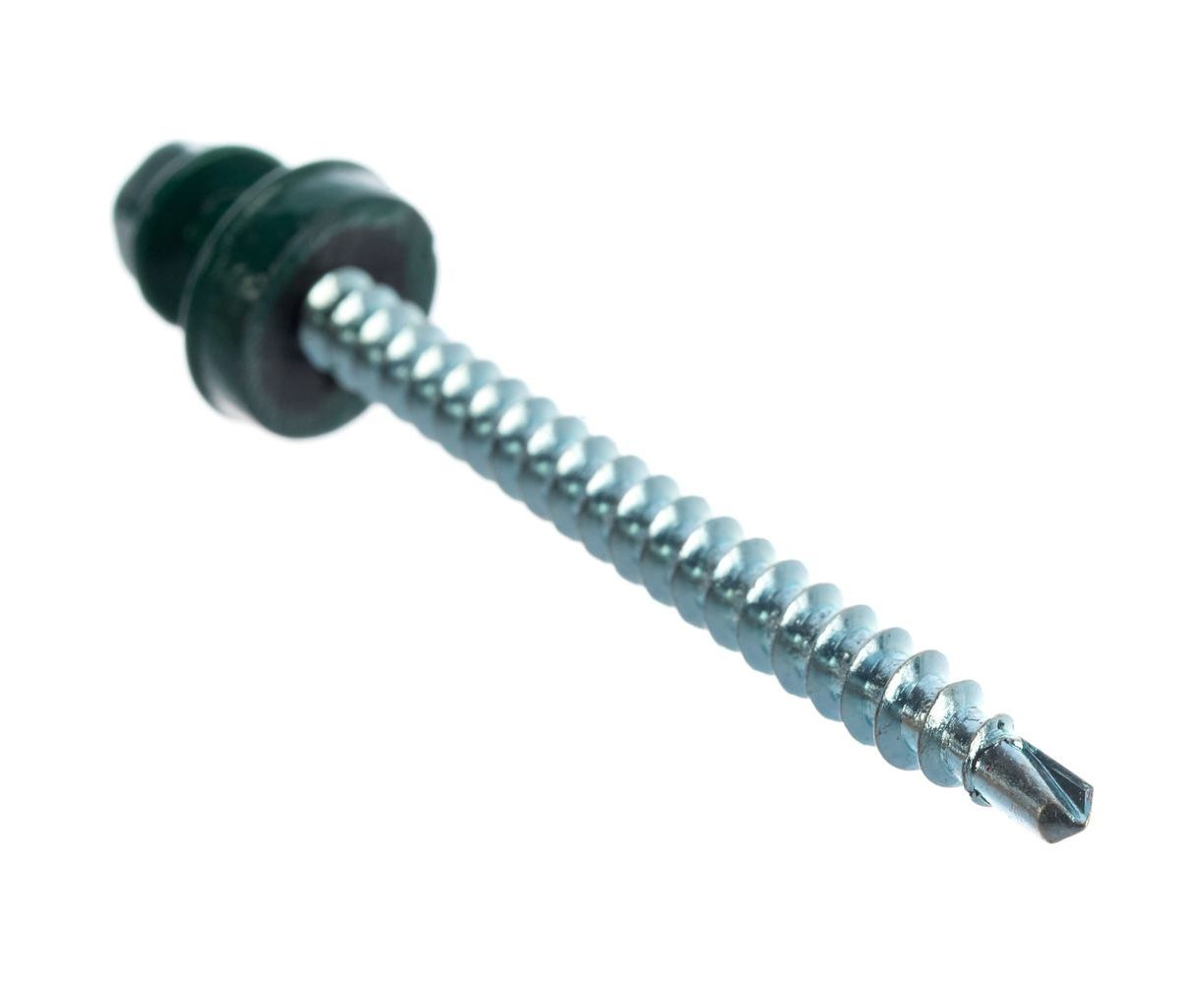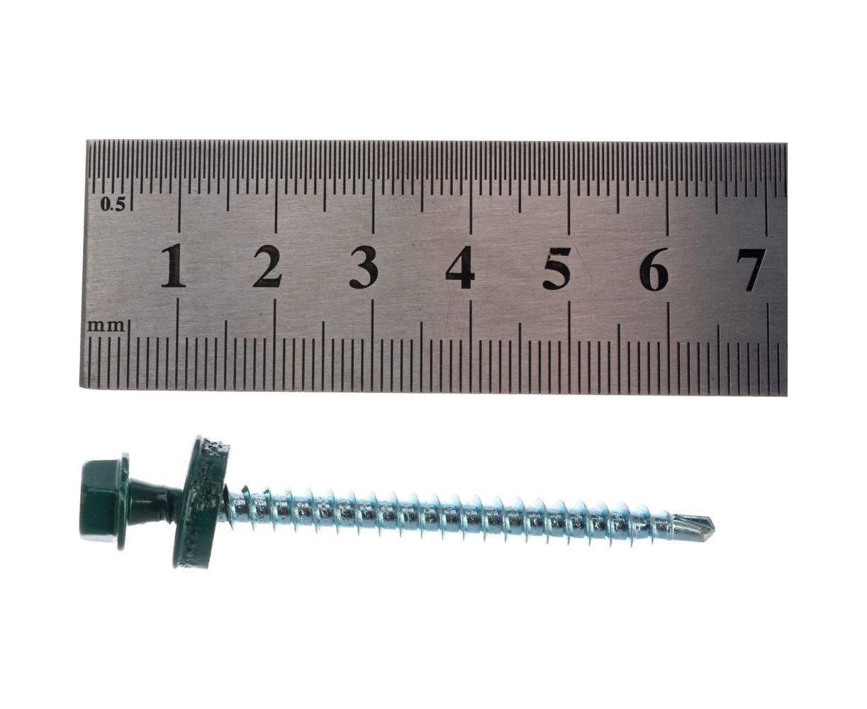 Саморезы Зубр для крепления кровельных материалов к деревянной обрешетке, цвет RAL 6005 зеленый насыщенный, оцинкованный, 4,8x60мм, 200шт 4-300315-48-060-6005