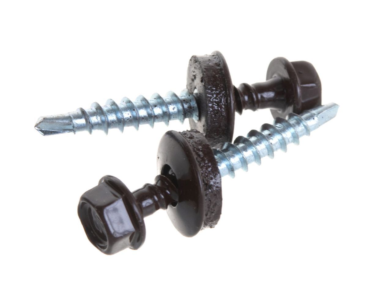 Саморезы Зубр для крепления кровельных материалов к деревянной обрешетке, цвет RAL 8017 шоколадно-коричневый, оцинкованный, 4,8x35мм, 1800шт 4-300310-48-035-8017