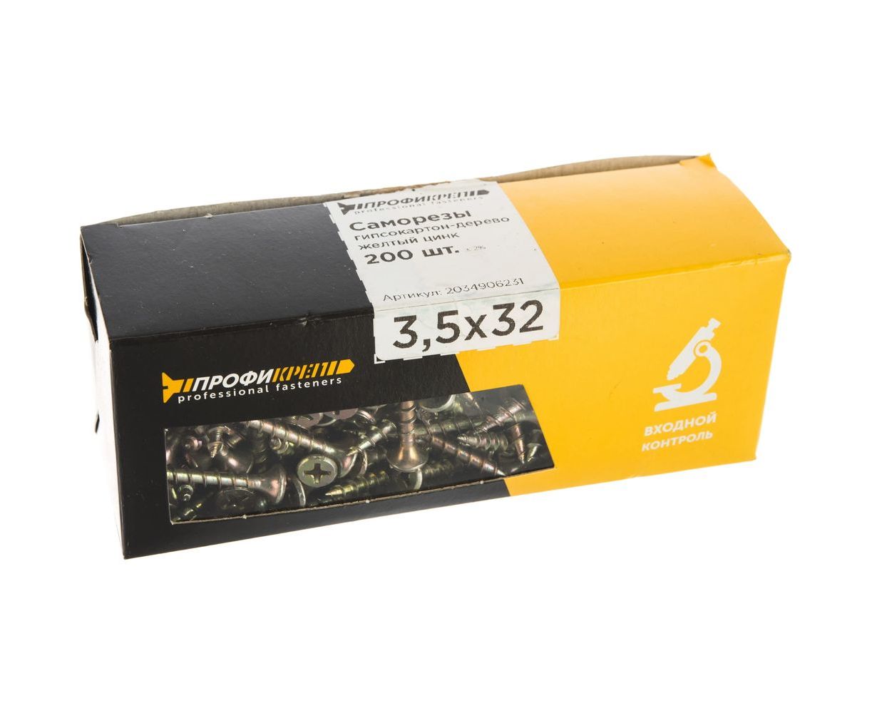Саморезы с потайной головкой и крупным шагом Профикреп жёлтый цинк, 3,5х32 200 шт 2034906231
