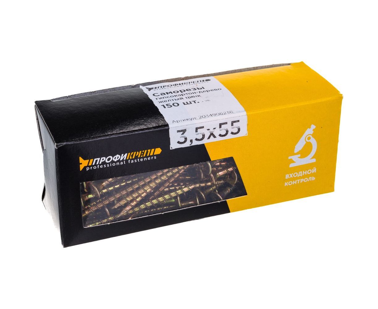 Саморезы с потайной головкой и крупным шагом Профикреп жёлтый цинк, 3,5х55 150 шт 2034906236