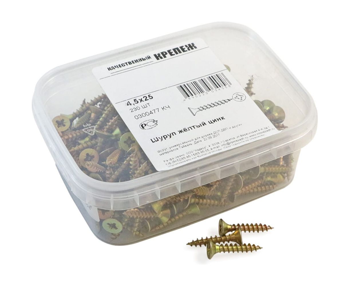 Шуруп Качественный КРЕПЕЖ желтый цинк 4,5x25, 230 шт. 0300477 КЧ
