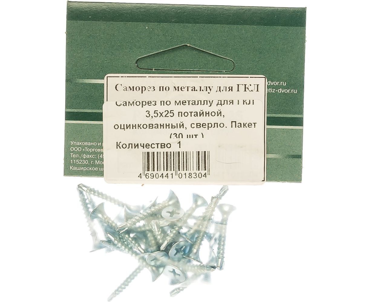 Саморез по металлу для ГКЛ Метизный двор 3,5x25 потайной, оцинкованный, сверло 30 шт. 4690441018304