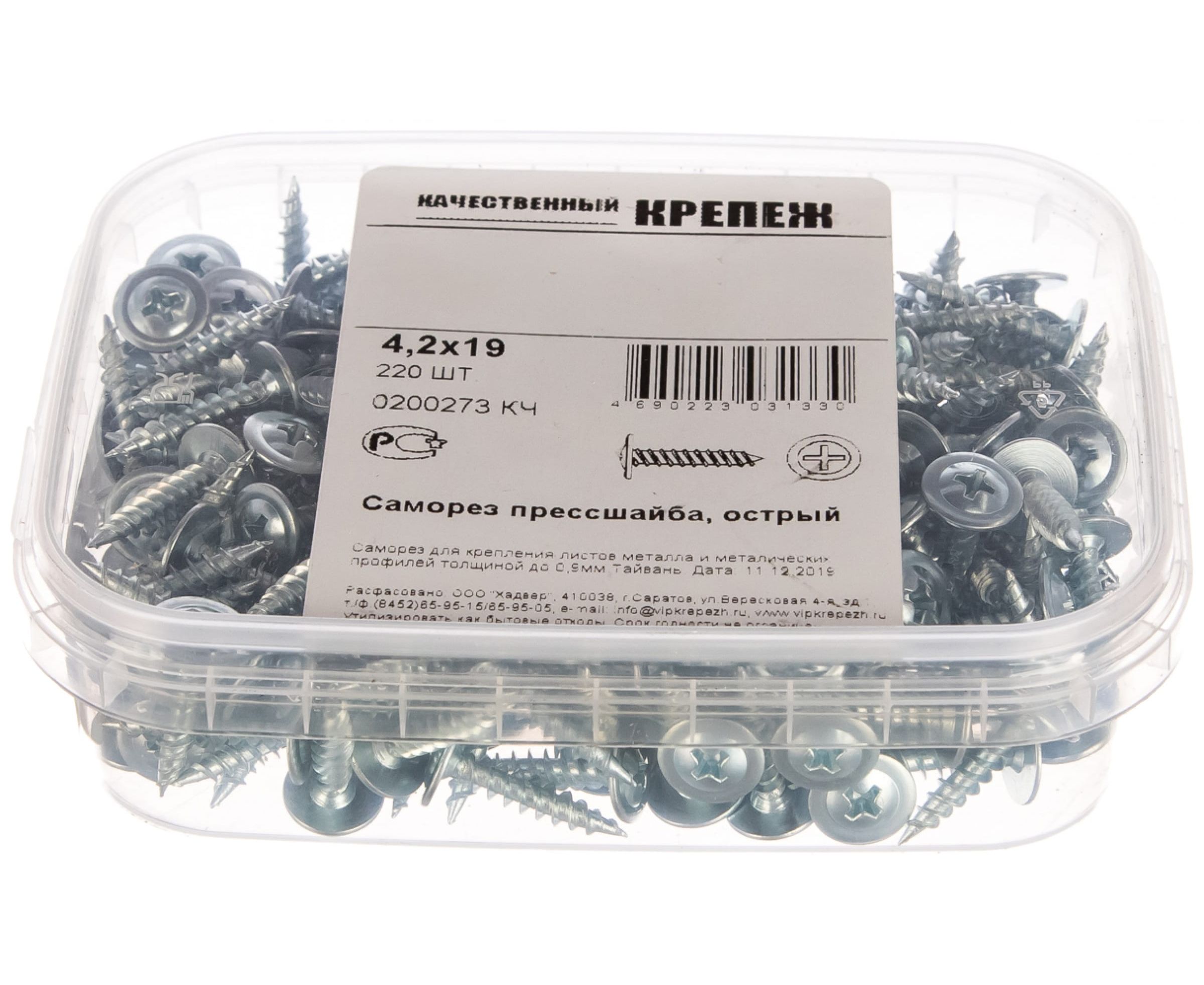Саморез с прессшайбой Качественный Крепеж 4,2х19 острый 220 шт 0200273 КЧ