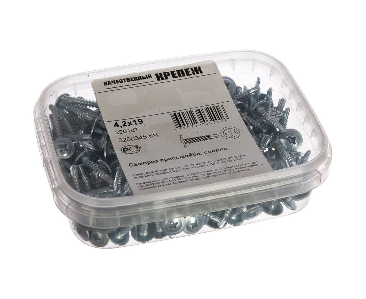 Саморез с прессшайбой Качественный Крепеж 4,2х19 сверло 220 шт 0200345 КЧ