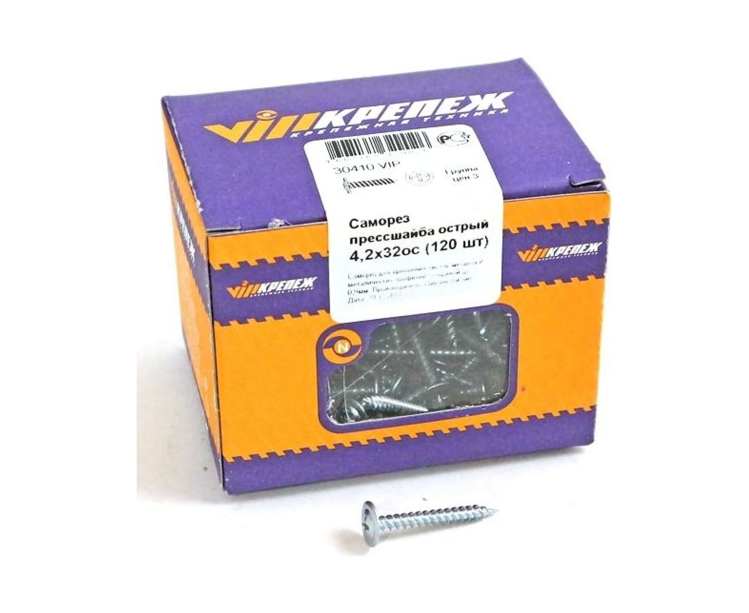 Саморез VIPкрепеж прессшайба острая 120 шт 30410 VIP