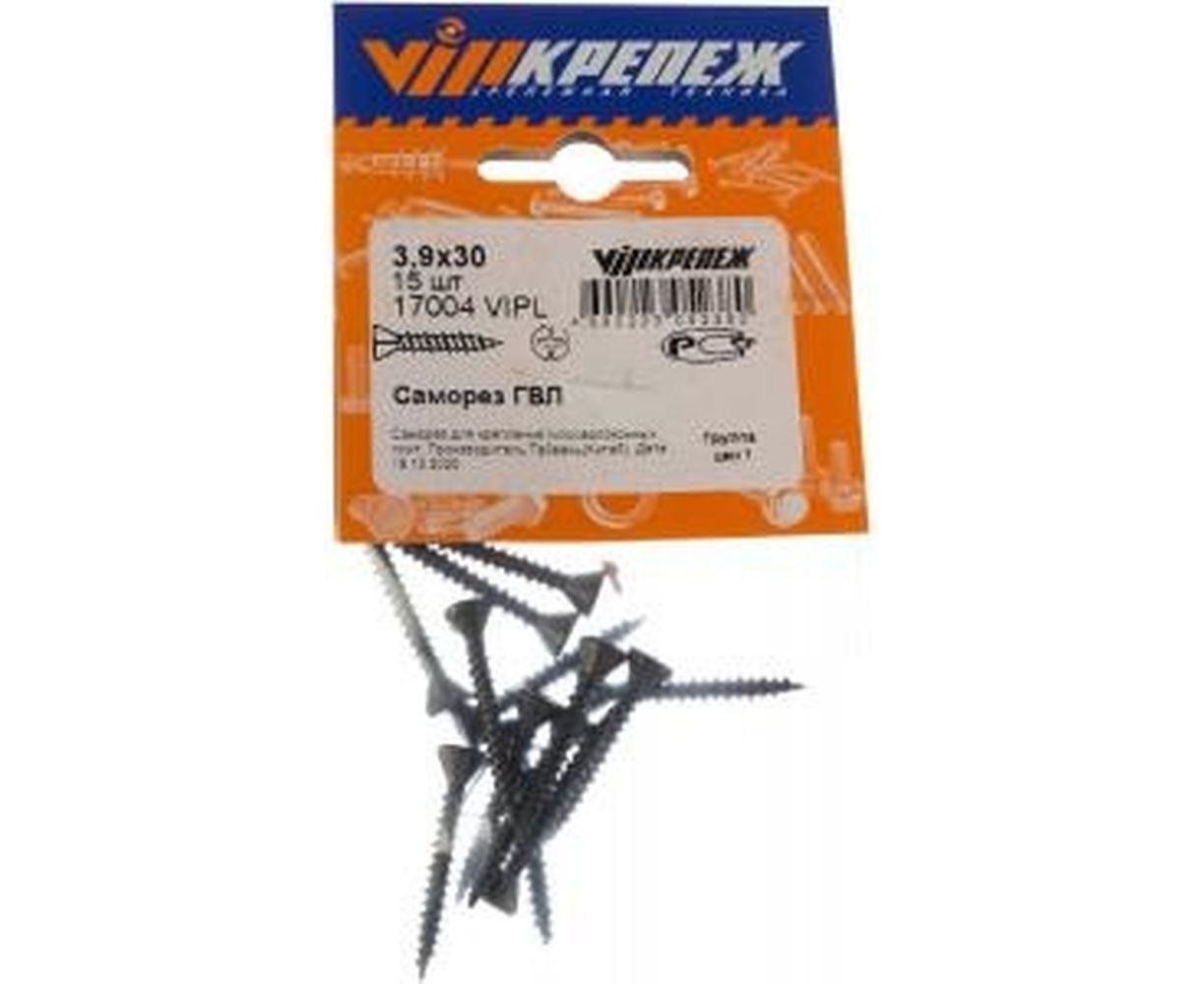 Саморез ГВЛ VIPкрепеж 3.9х30, 15 шт. 17004 VIPL