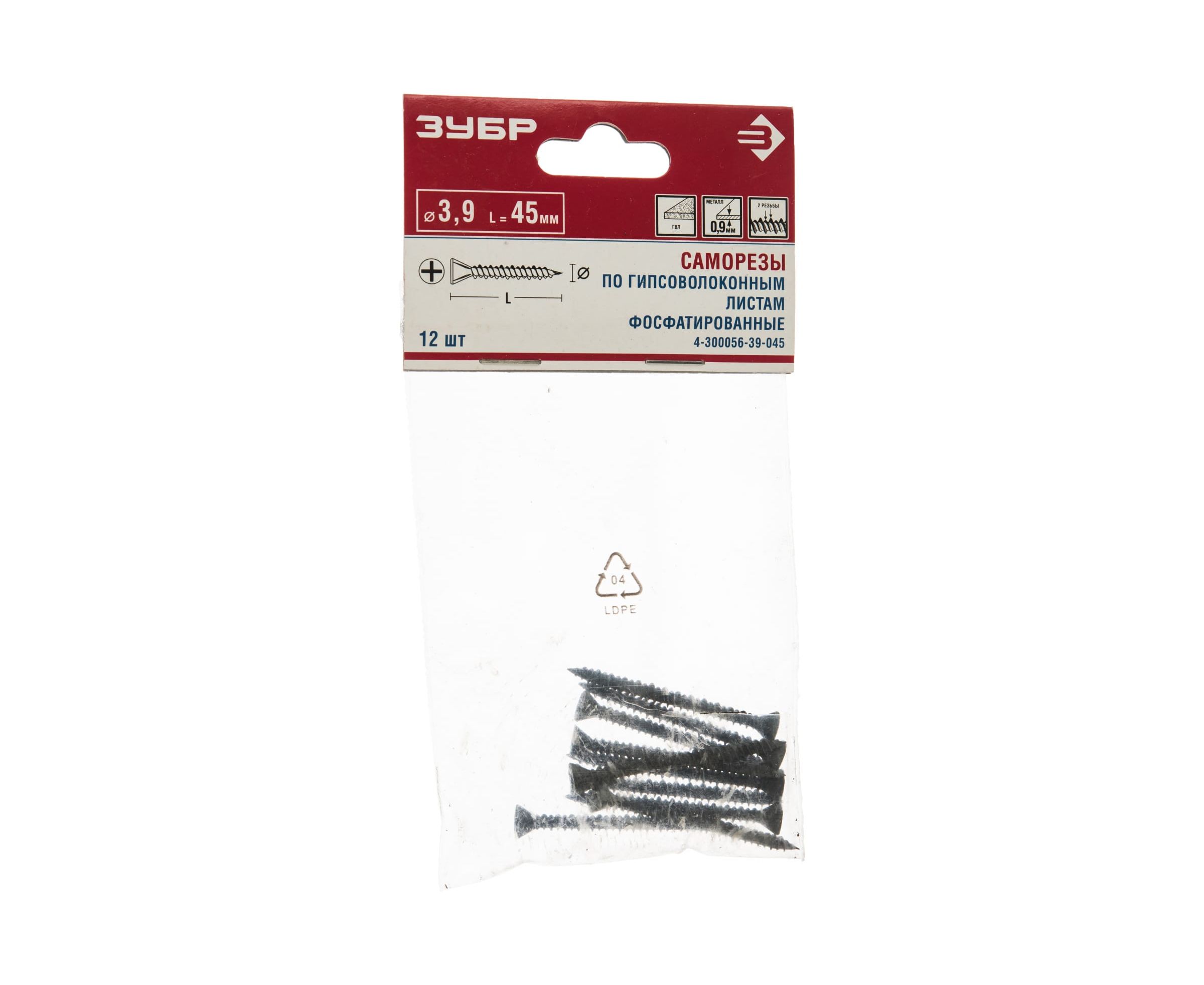 Саморезы для крепления гипсоволоконных плит 12 шт. (3,9х45 мм; PH2; ТФ6) ЗУБР 4-300056-39-045