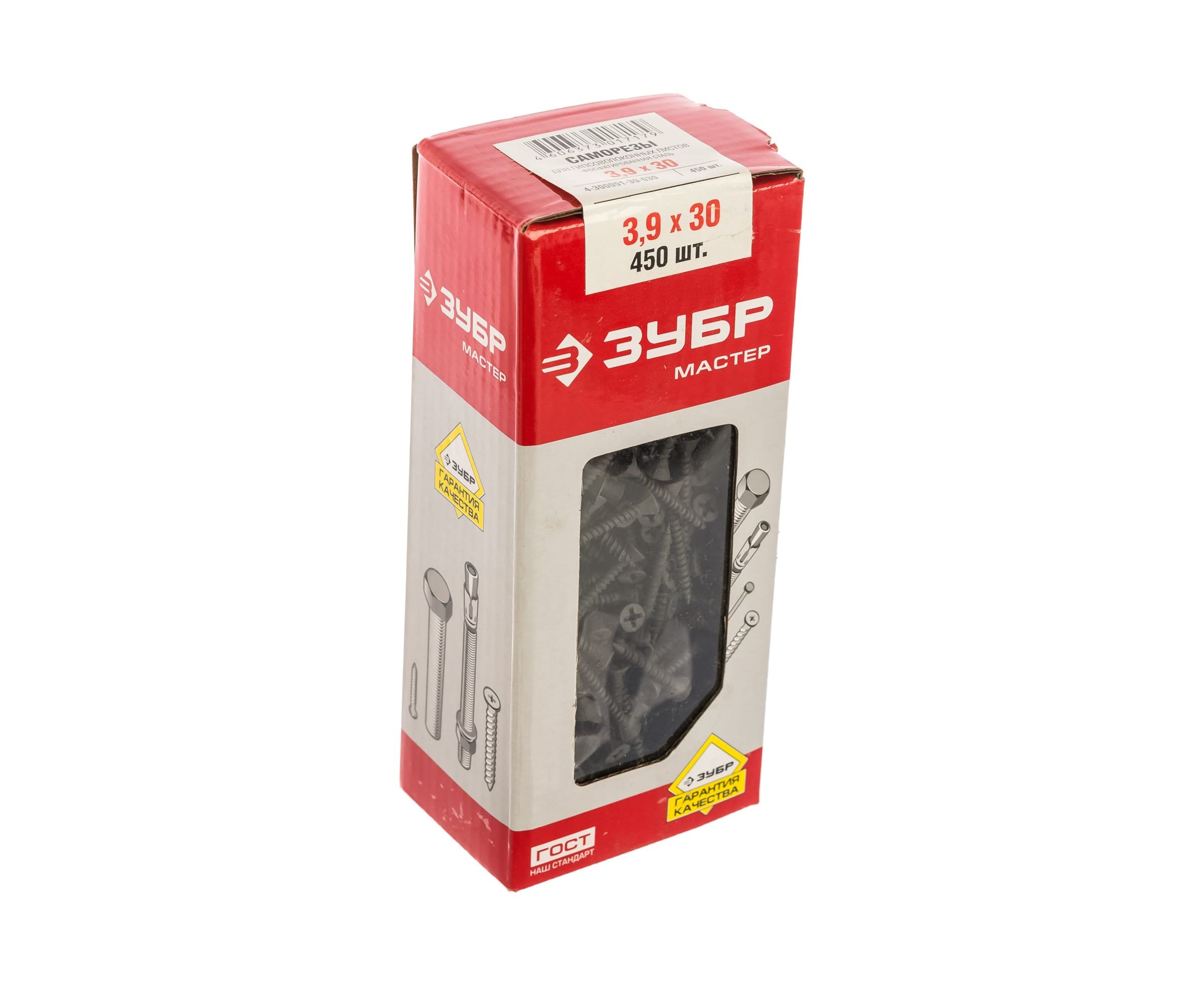 Саморезы с двухзаходной резьбой Зубр по ГВЛ, ДСП, фосфатированные, PH2, 3,9x30мм, ТФ1, 450шт 4-300051-39-030
