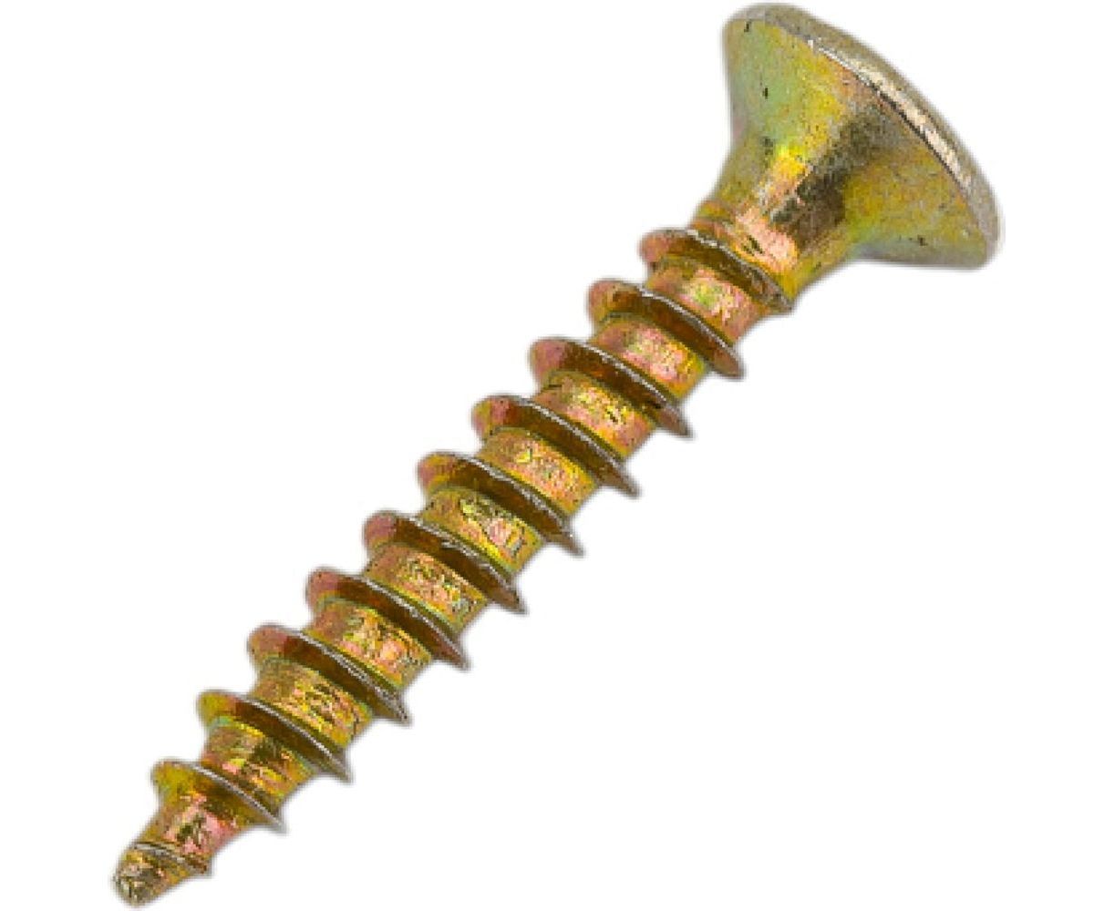 Шуруп крепежная техника желтый цинк, 2,5x16 1000 шт. 431296 БК предназначен для сборки конструкций из дерева, фанеры, ДСП, ОСП и пр. Изделие произведено из стали Ст10, защищено от коррозии путем оцинковки поверхности.