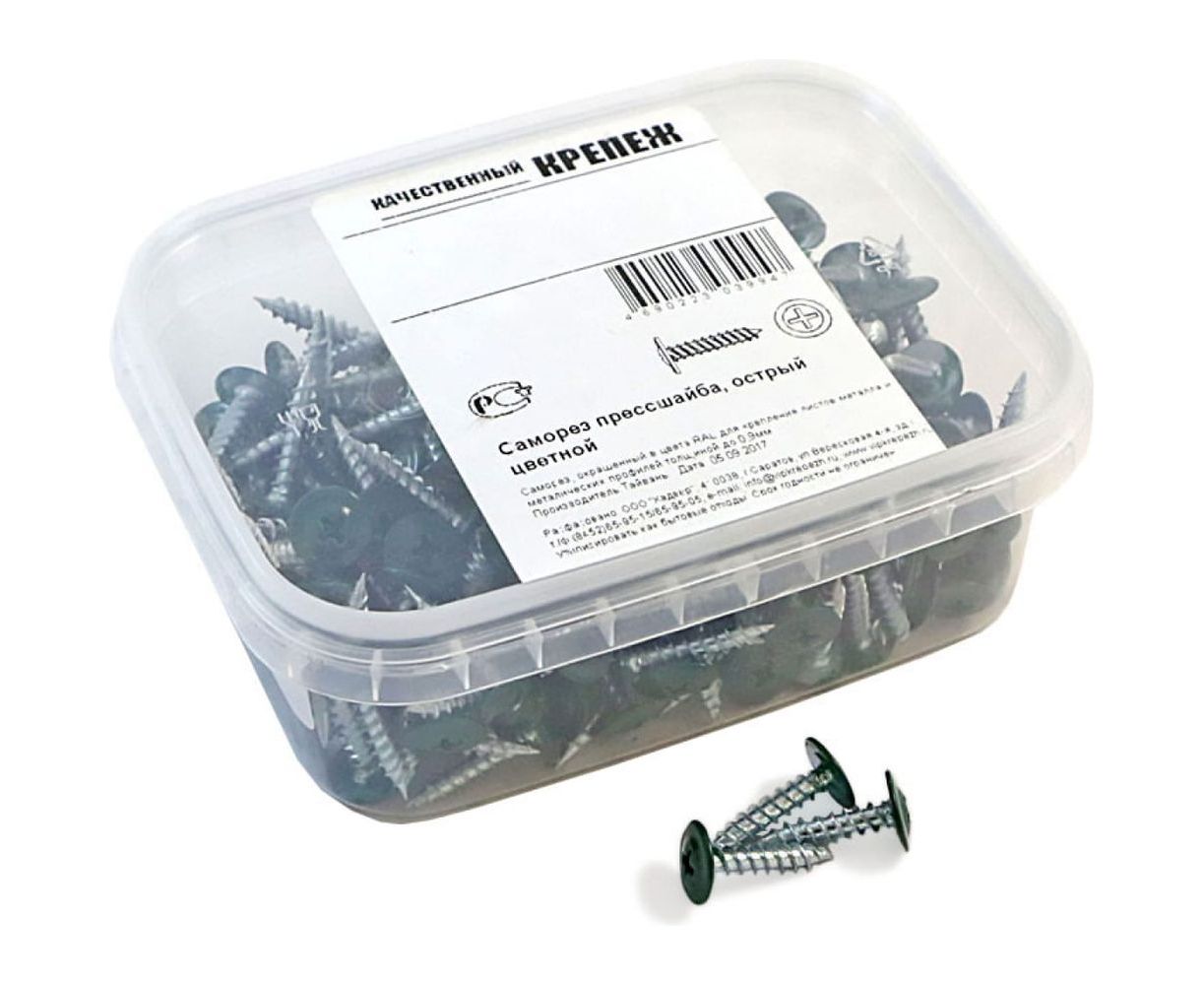 Прессшайба Качественный КРЕПЕЖ 4.2х16 мм, зеленый мох RAL 6005, острая, 250 шт 0200221 КЧ