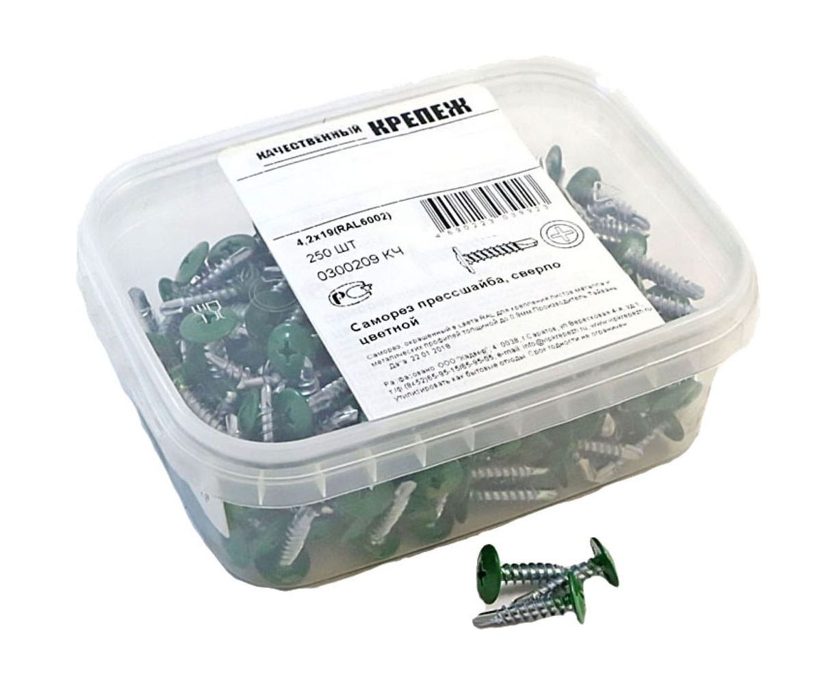 Прессшайба Качественный КРЕПЕЖ 4.2х19 мм, зеленый лист RAL 6002, сверло, 250 шт 0300209 КЧ