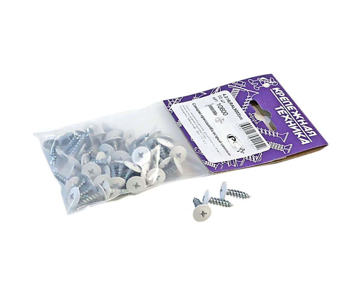 Саморез с прессшайбой крепежная техника белый, 4,2x16, ral 9003, острый, 50 шт. 10600