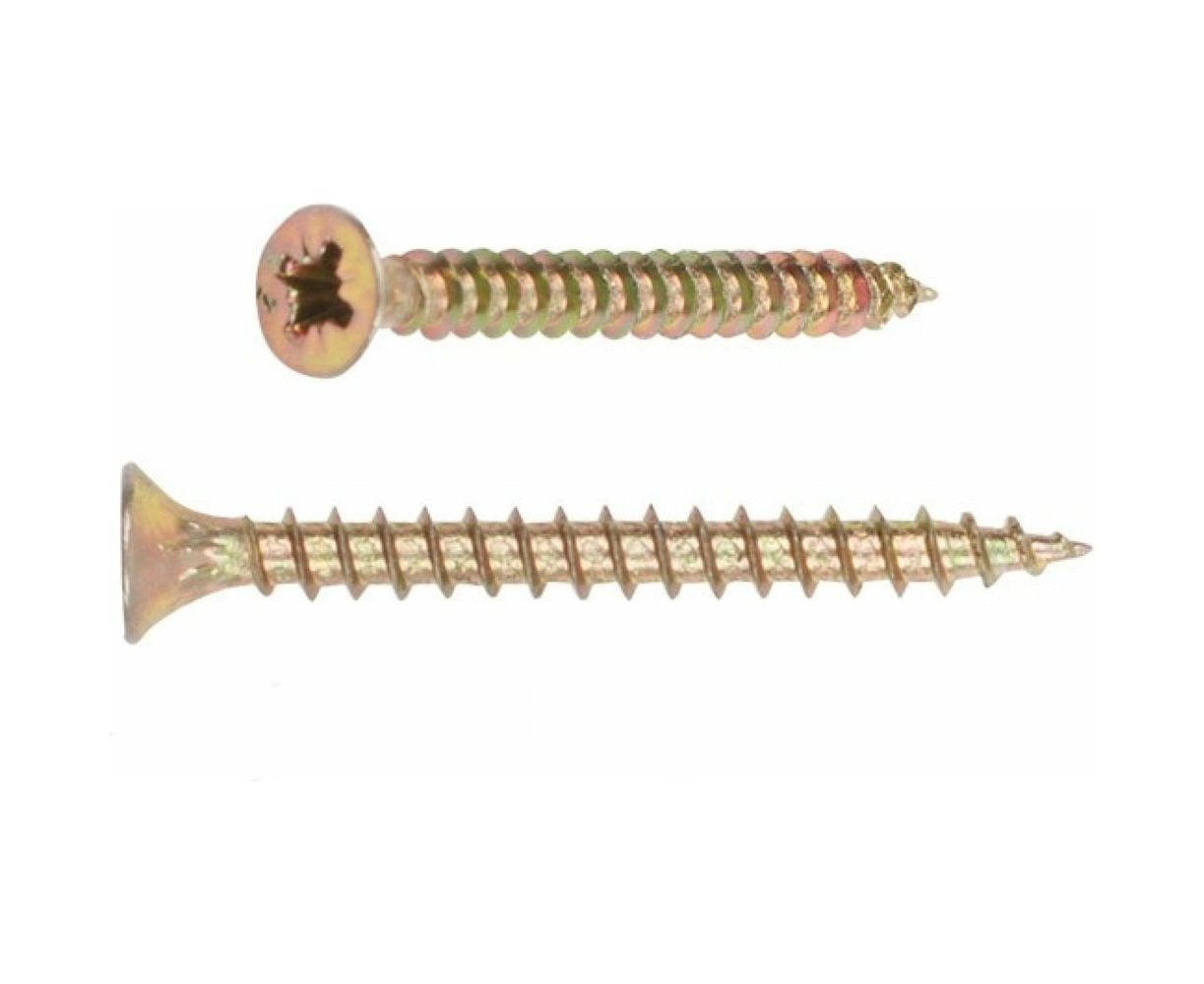 Универсальный шуруп STARFIX 3,0x50 мм, желтый цинк, 200 шт. SMP2-15430-200 используется для крепления различных конструкций к дереву, фанере, ДСП. Шуруп имеет потайную головку с крестообразным шлицем (PZ) и острый наконечник.