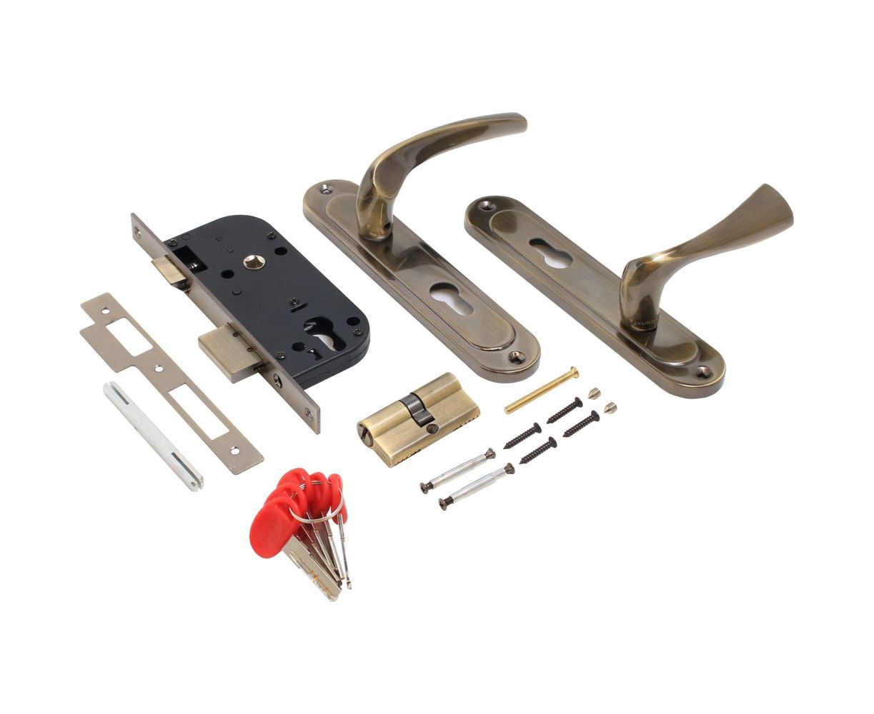 Врезной замок БУЛАТ ЗВ4-1.70.03.01 НОМОС (бронза; 5 перфоключей; с ручками) 13974 предназначен для установки в металлические и деревянные двери толщиной 35-45 мм, правого и левого открывания. Дверь может быть закрыта на защелку и открыта с помощью фалевой ручки при открытом засове замка. Стальной корпус покрыт полимерной краской. Материал ручек - алюминиевый сплав.