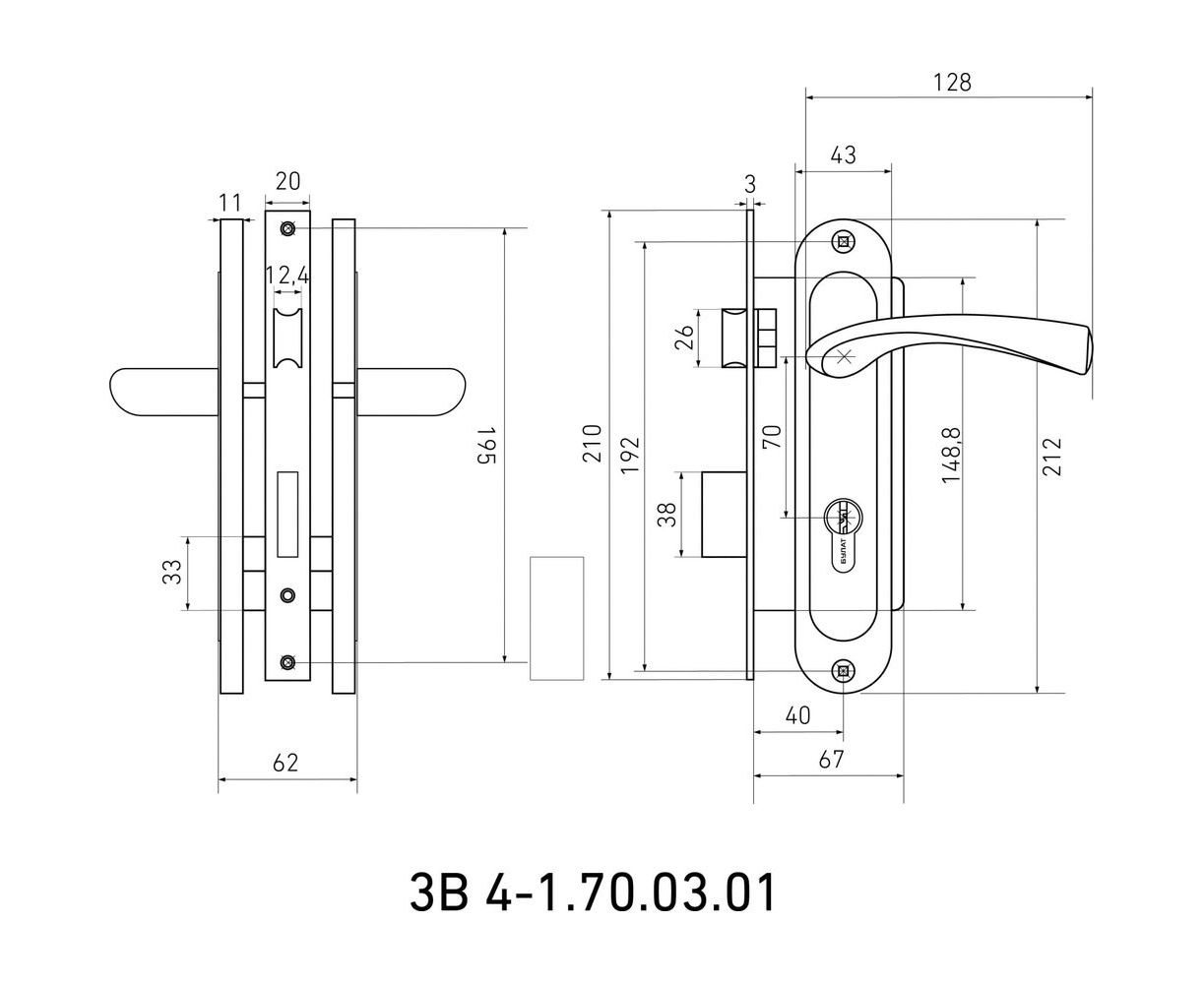 Врезной замок БУЛАТ ЗВ4-1.70.03.01 НОМОС (бронза; 5 перфоключей; с ручками) 13974