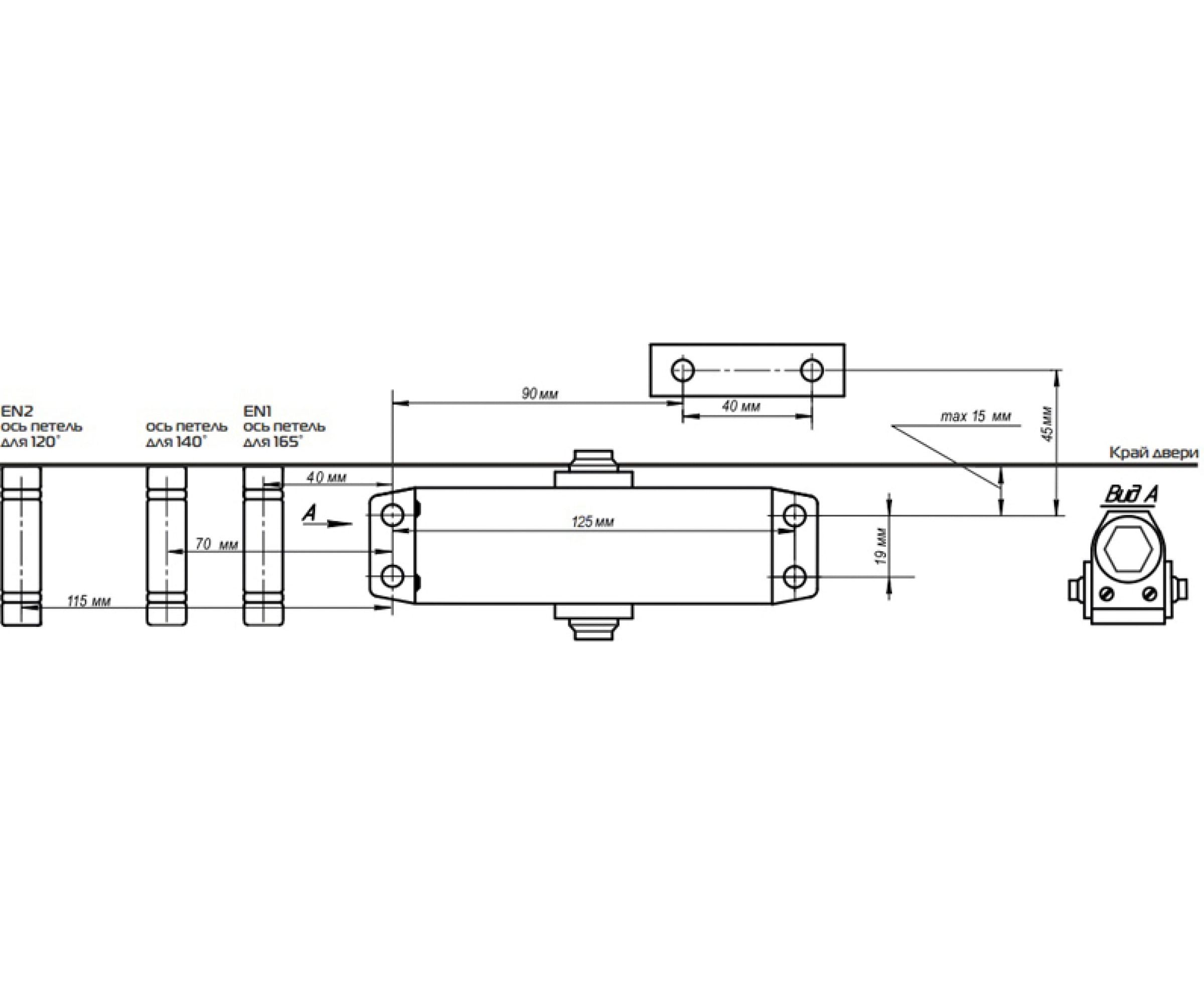 Вес дверидо 65 кг Дополнительная фиксацияДа, постоянная Защита от ветранет КлассEN3 Монтажверхний
