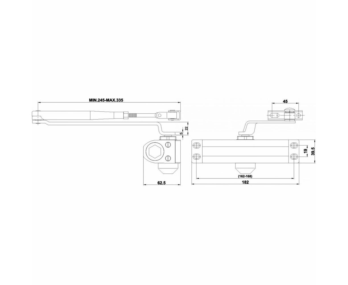 Дверной доводчик DOORLOCK DL70 EN2/3/4 белый, вес двери до 90 кг, крепежные размеры 162-165мм х 19мм 75545