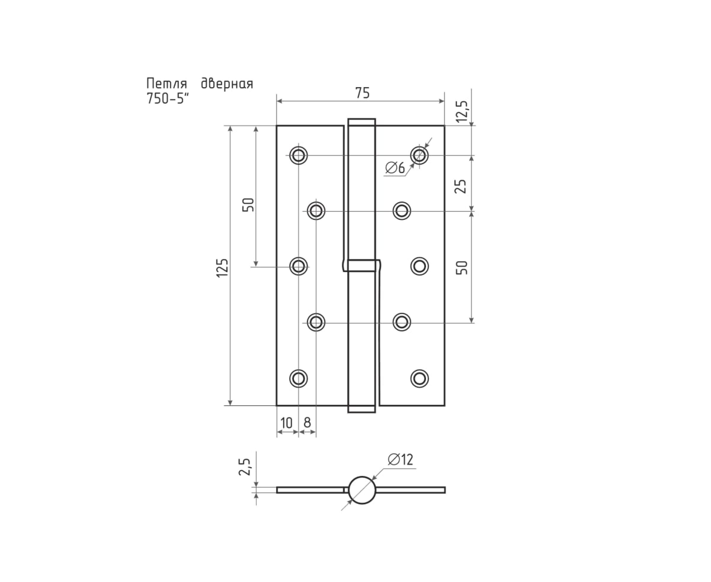 Петля НОРА-М 750-5"" мат. хром покр. правая 2,5 мм, №2 10598