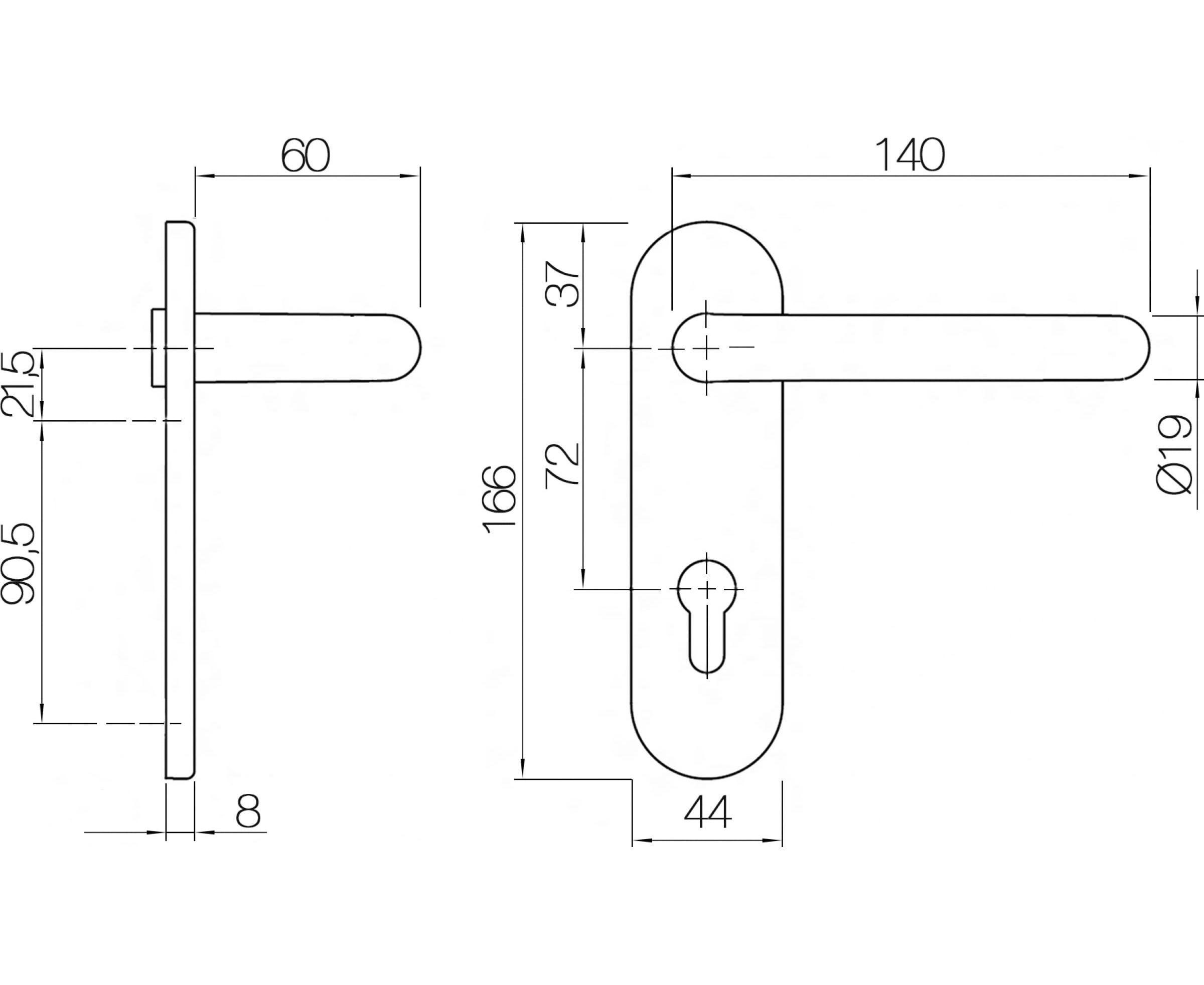 Гарнитур DOORLOCK DL 038KP/F-S9 PZ72 U-form Rt нерж. сталь, на короткой накладке, шпиндель 9мм 73314