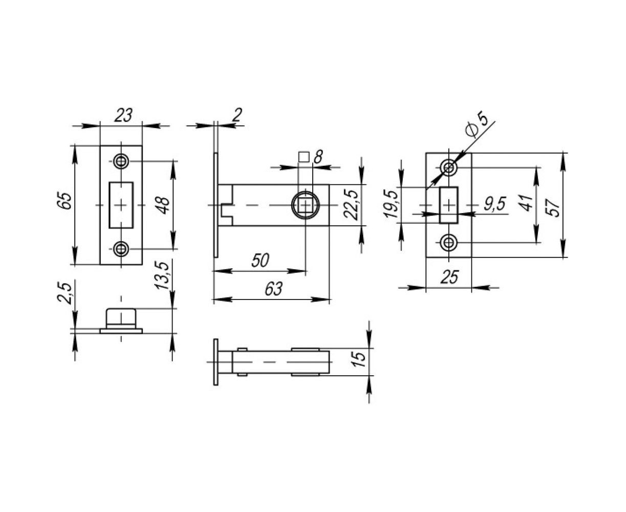 Высота57 мм Длина70 мм Дополнительная фиксациянет Комплектациязащелка, ответная планка Материалсталь/ЦАМ