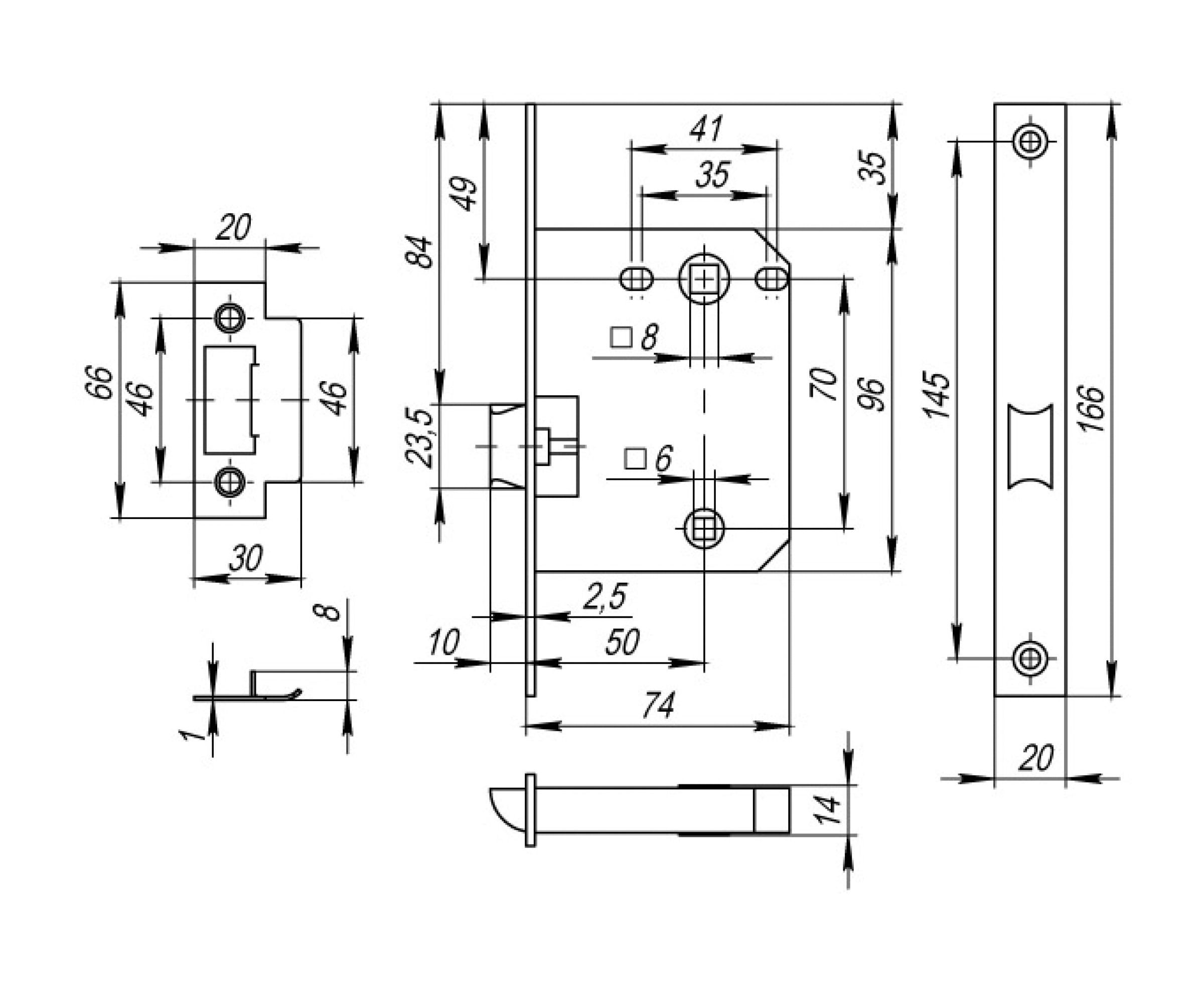 Врезная защелка Fuaro PLASTIC P72-50 AB бронза 33597