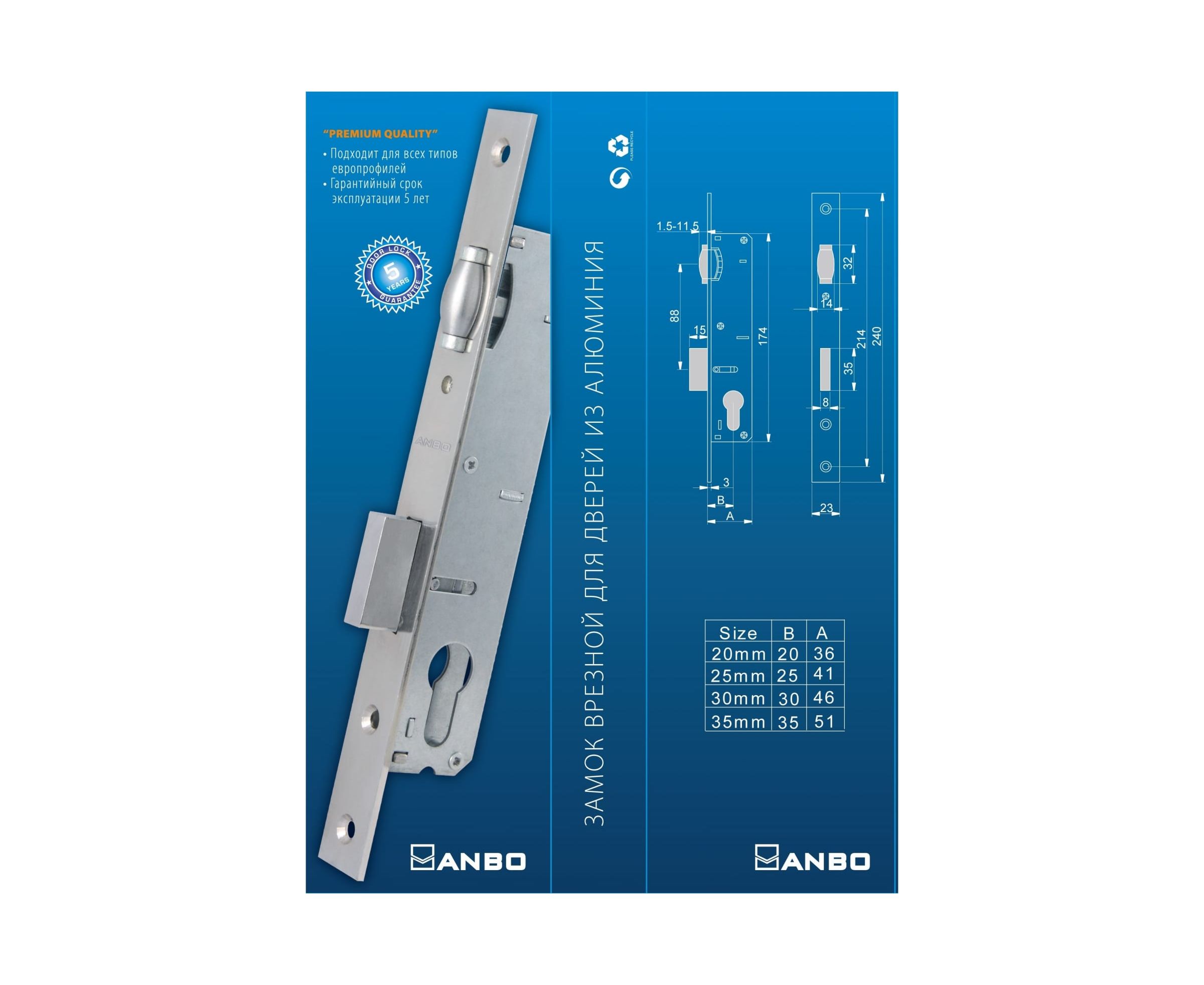 Замок дверной врезной ANBO м/о 85 мм, пл. 23 мм, д/м 30 мм с роликовой защелкой l4378