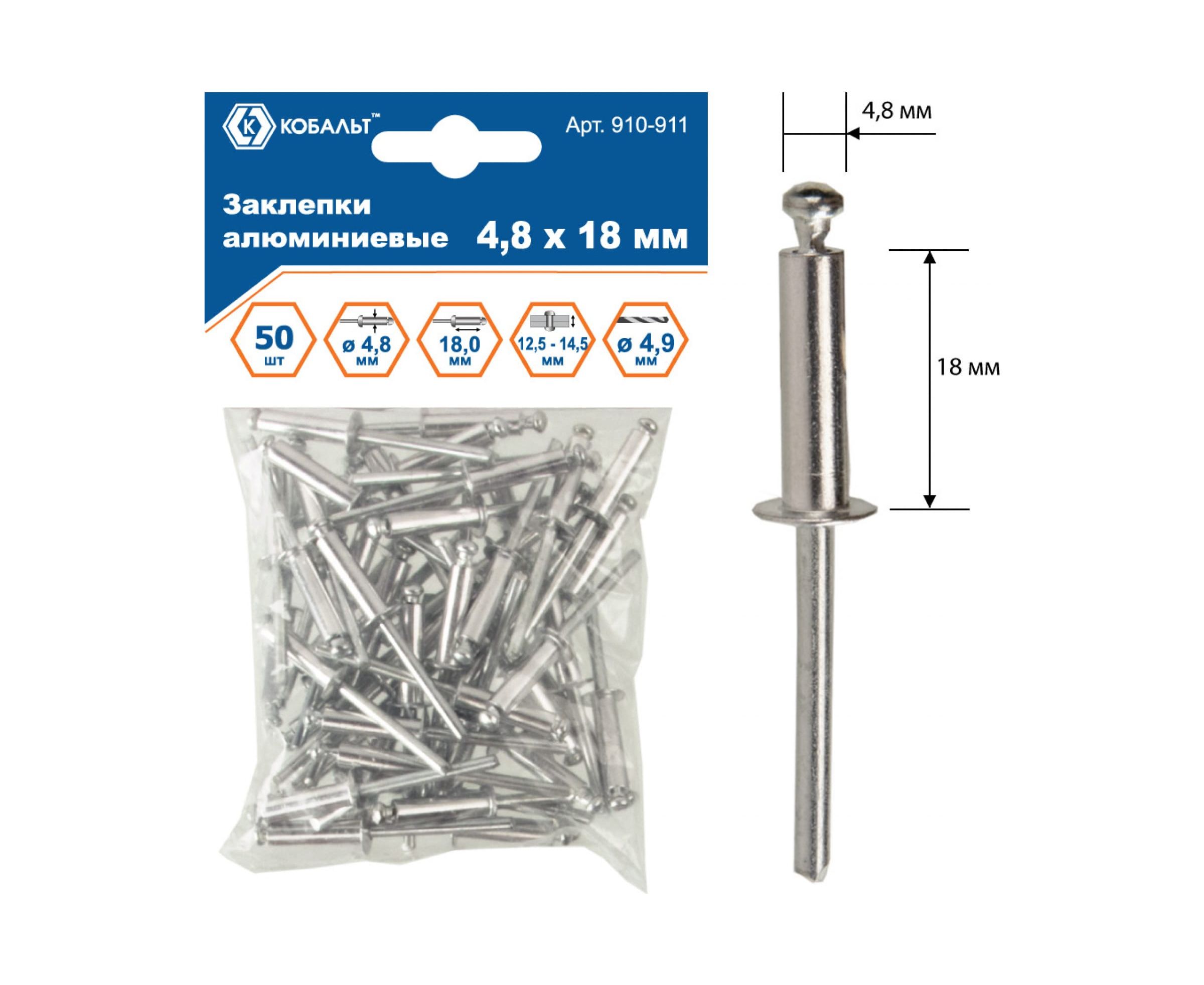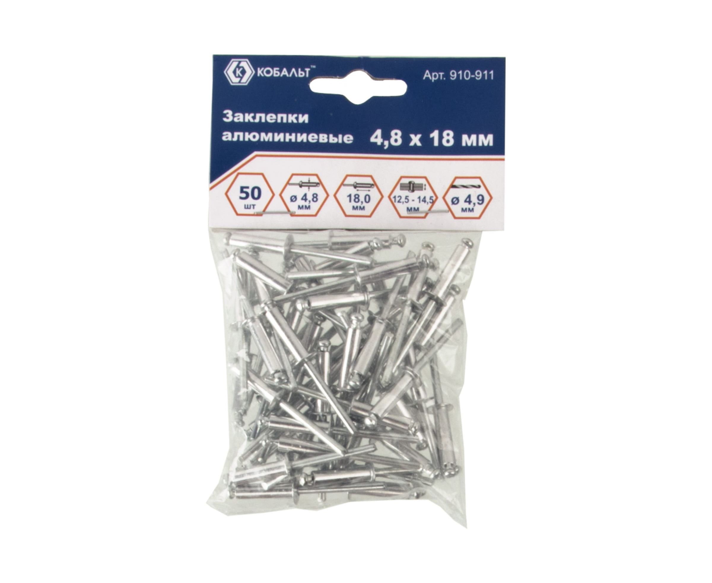 Заклепки вытяжные алюминиевые (4.8х18 мм; пакет 50 шт) КОБАЛЬТ 910-911