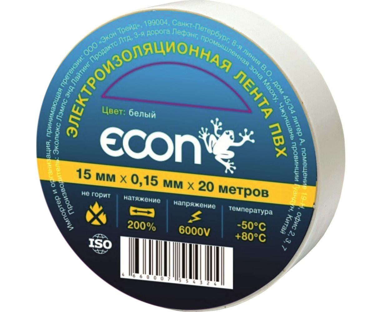 Изолента Econ 15 мм х 20 м, 0,15 мм, белый 15201504