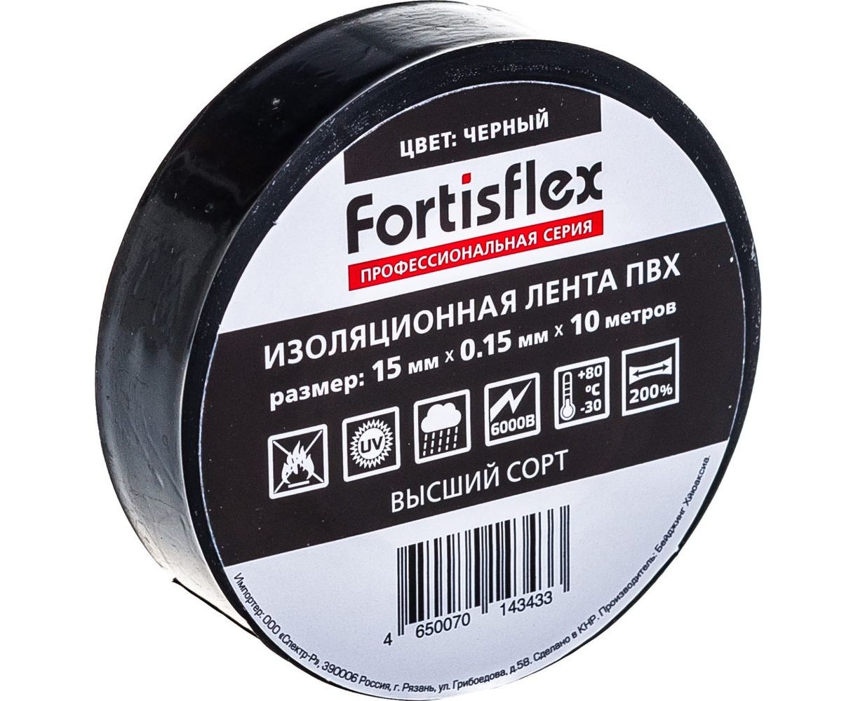 Изолента ПВХ FORTISFLEX 15 ммх0.15 ммх10 м черная 71228