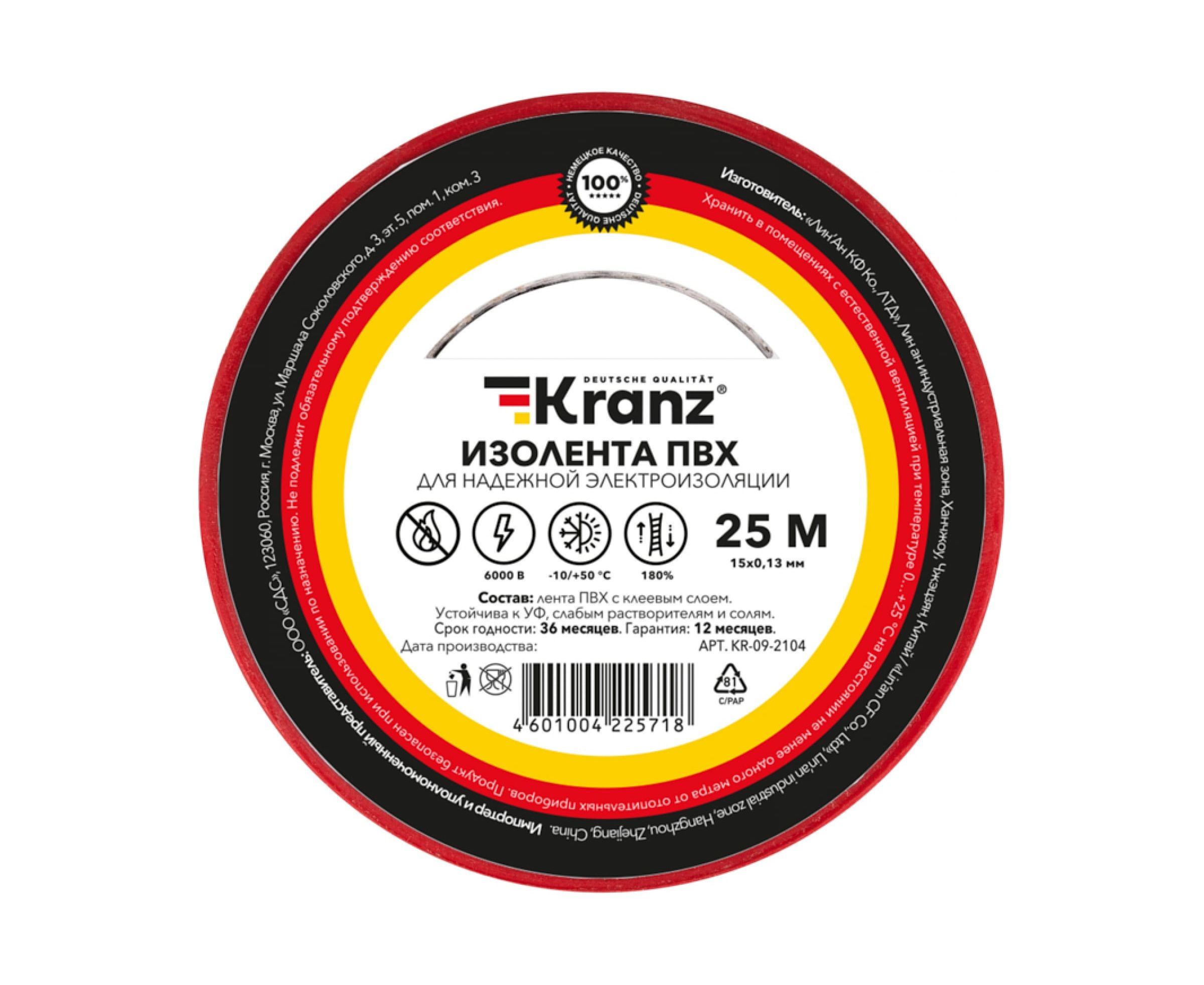 Изолента ПВХ KRANZ 15 мм х 25 м, 0.13 мм, красная KR-09-2104